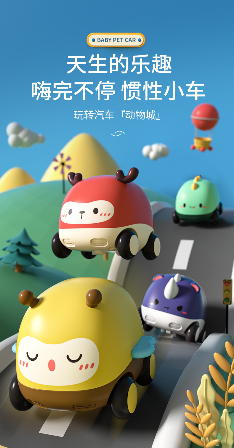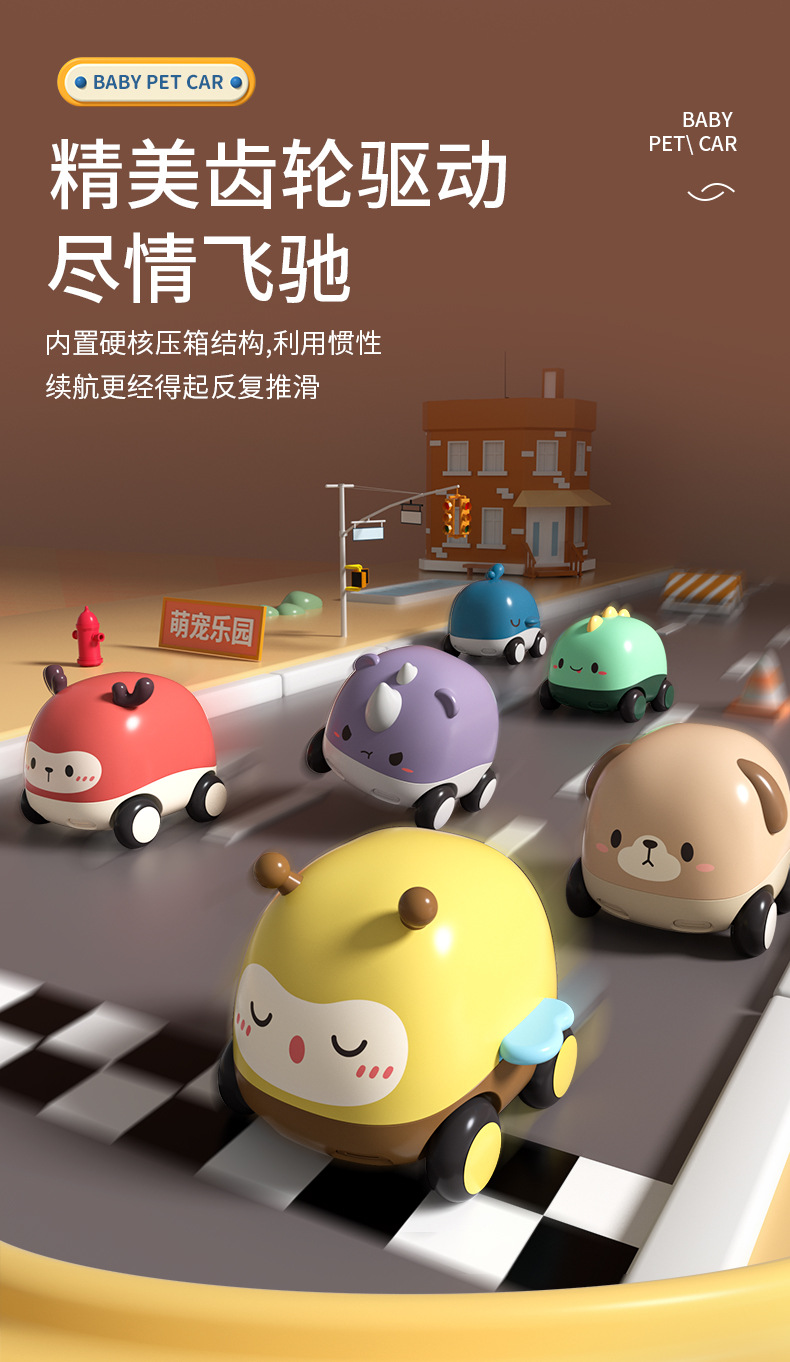 크로스 보더 만화 동물 풀백 자동차 소년 장난감 자동차 어린이 관성 자동차 미니 아기 퍼즐 자동차 세트스토어 가기