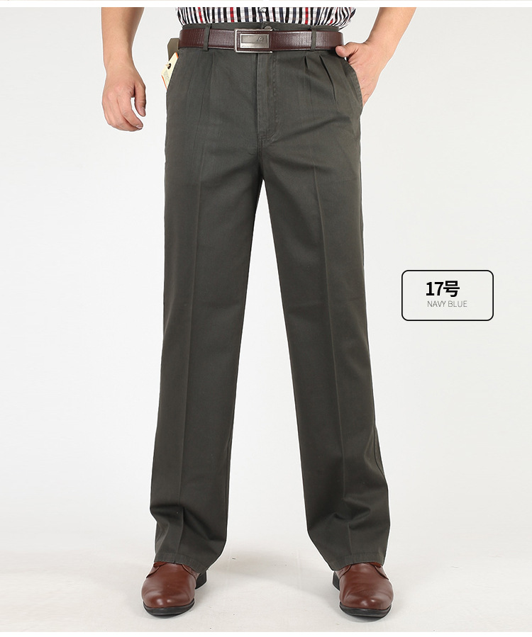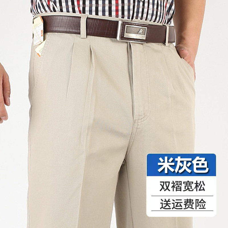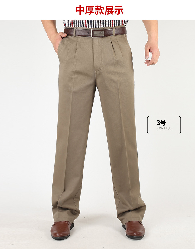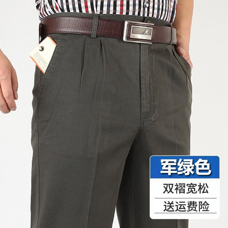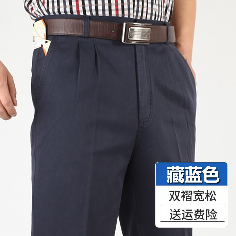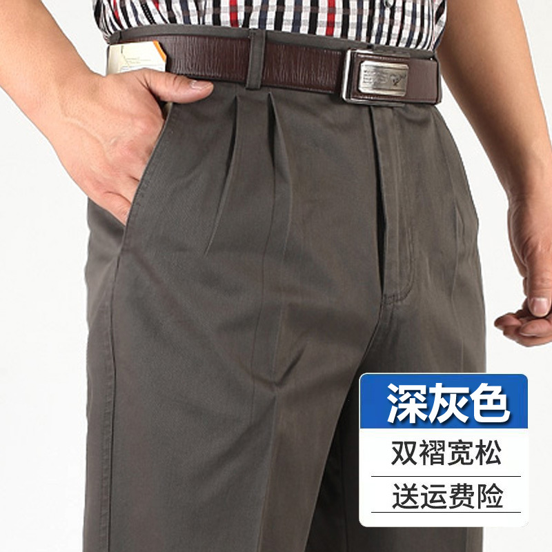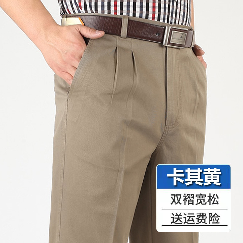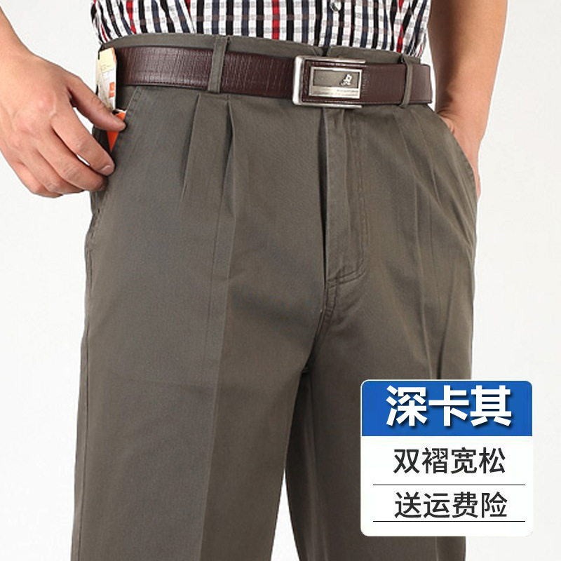 아빠의 바지 남자의 봄과 가을 두꺼운 중년 캐주얼 바지 남자의 순면 하이 웨이스트 깊은 느슨한 더블 플리츠 플러스 사이즈 바지스토어 가기