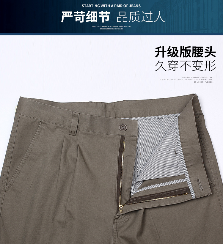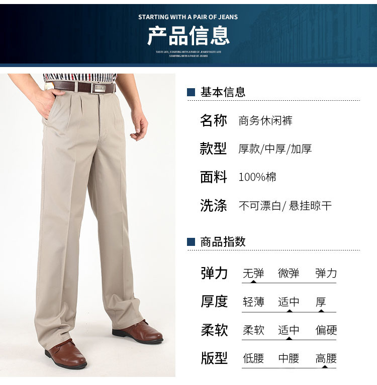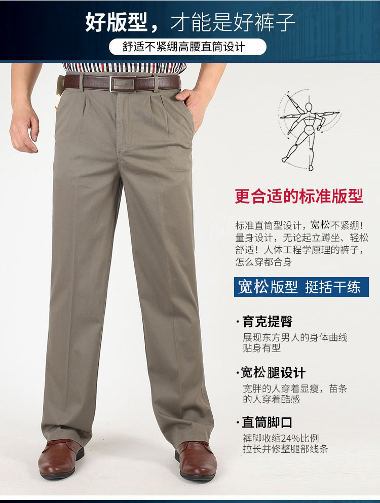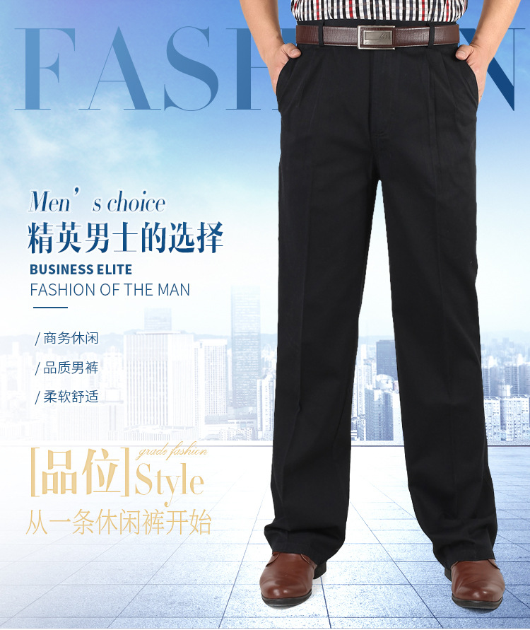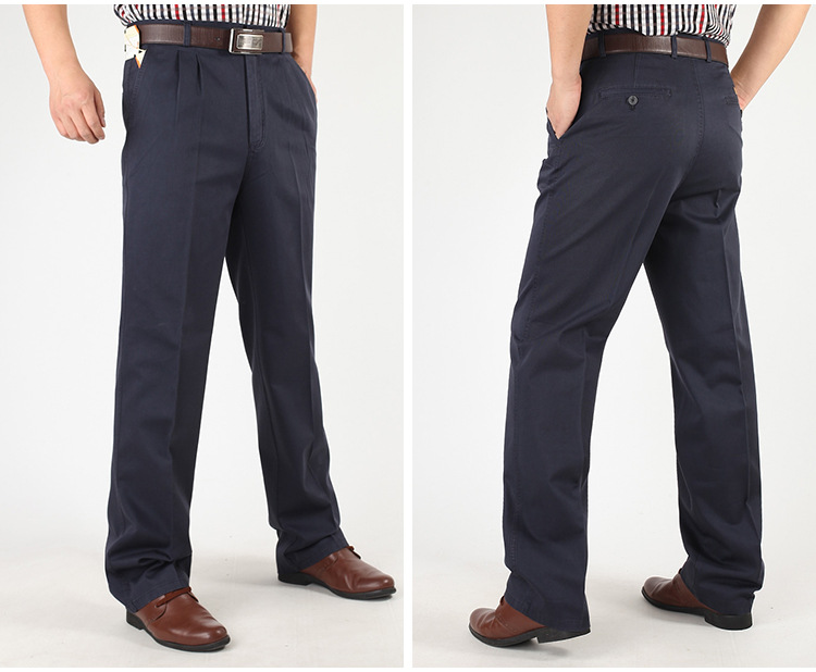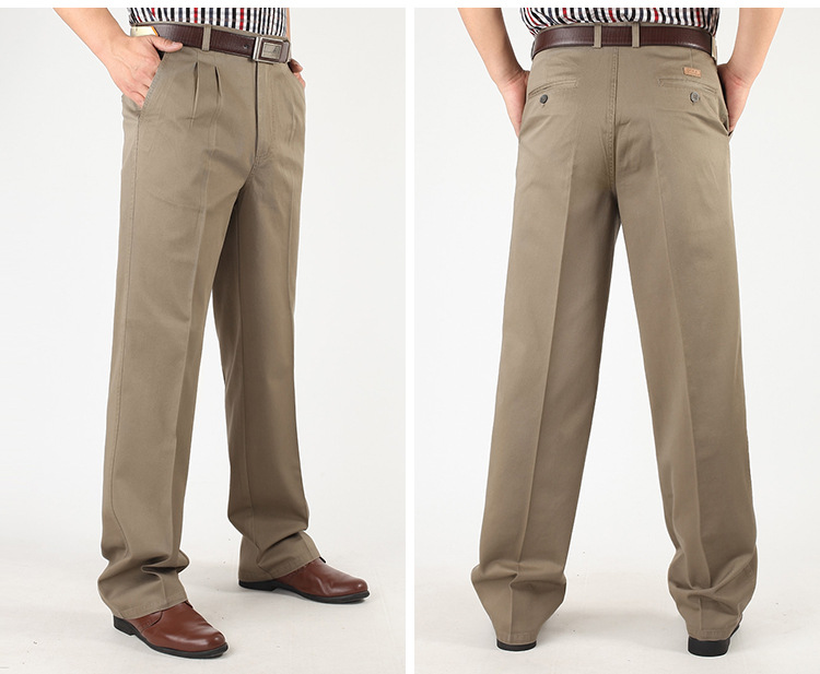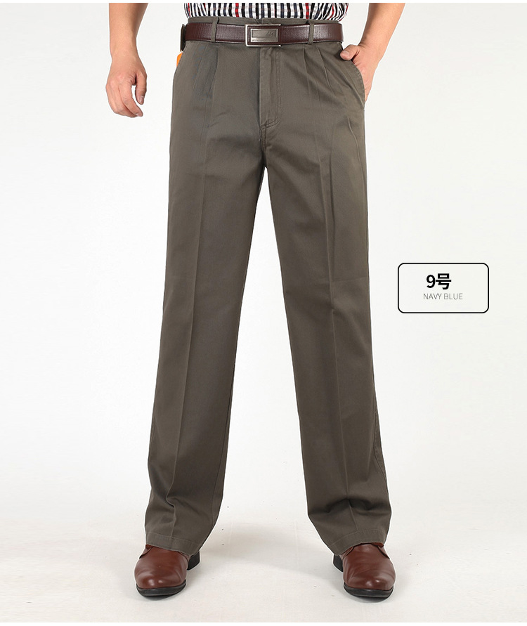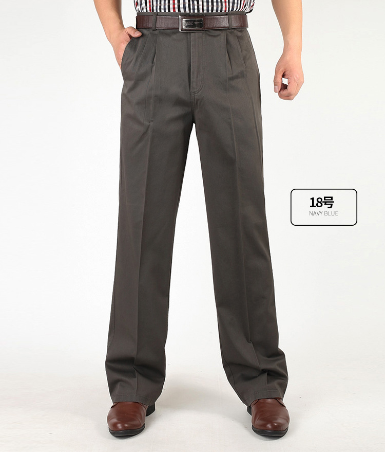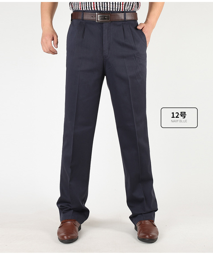 아빠의 바지 남자의 봄과 가을 두꺼운 중년 캐주얼 바지 남자의 순면 하이 웨이스트 깊은 느슨한 더블 플리츠 플러스 사이즈 바지스토어 가기