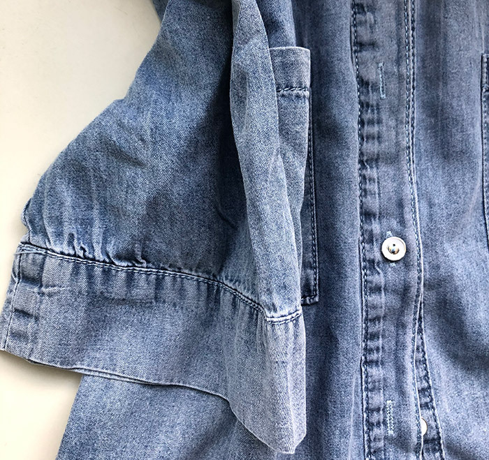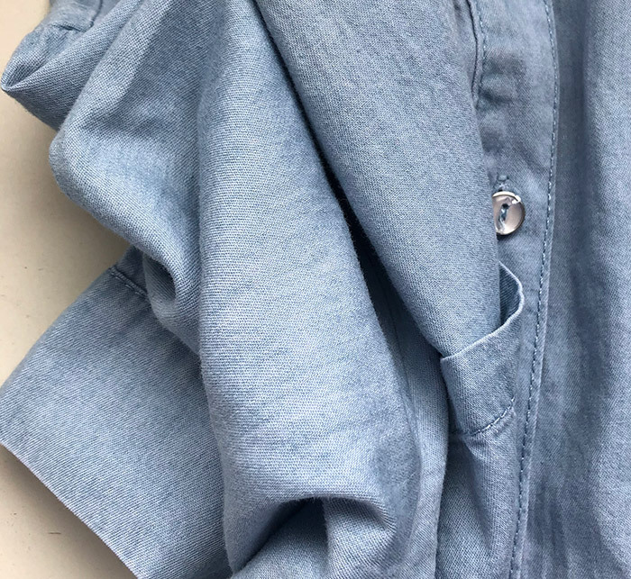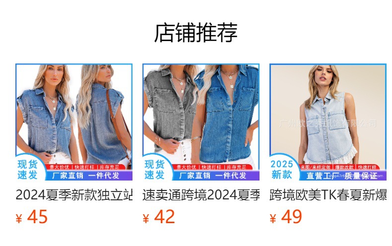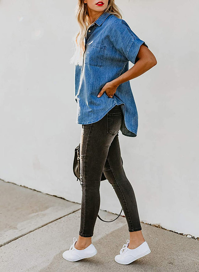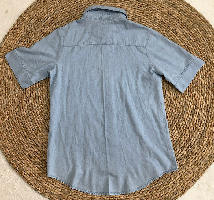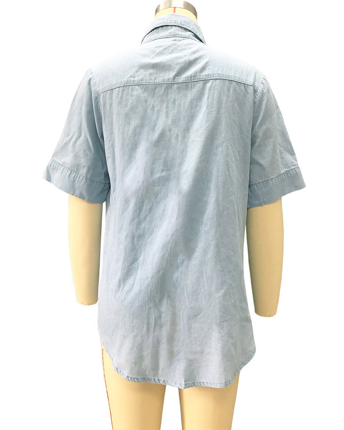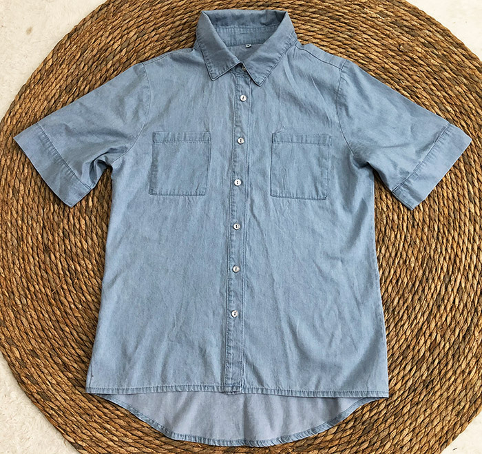 2023 봄/여름 독립 역 아마존 국경 간 Lel 반팔 데님 셔츠 유럽과 미국의 느슨한 단색 탑 여성 의류스토어 가기