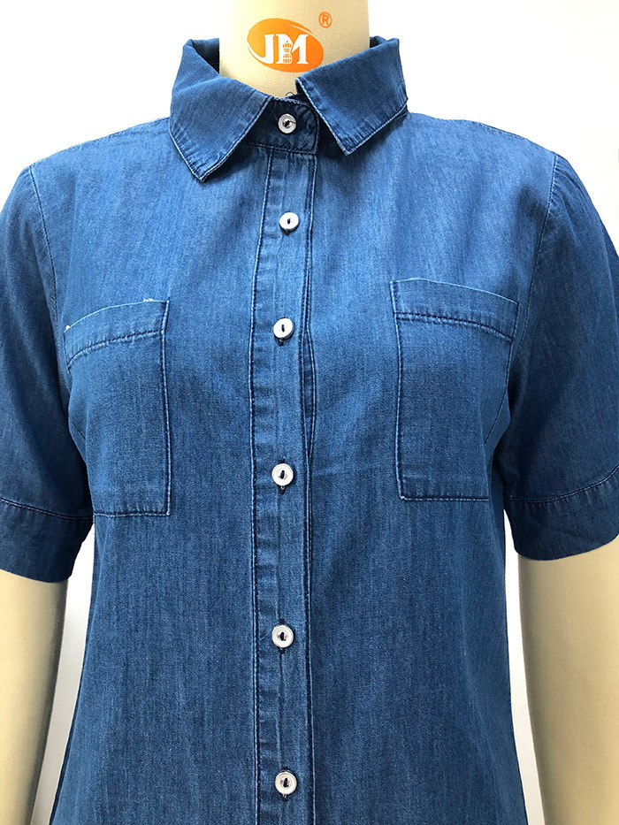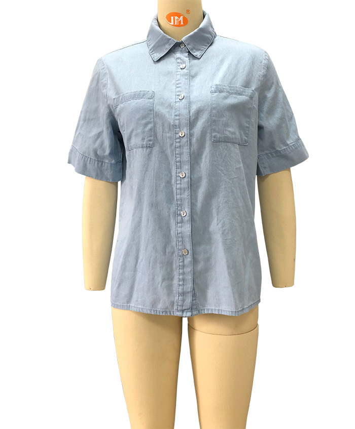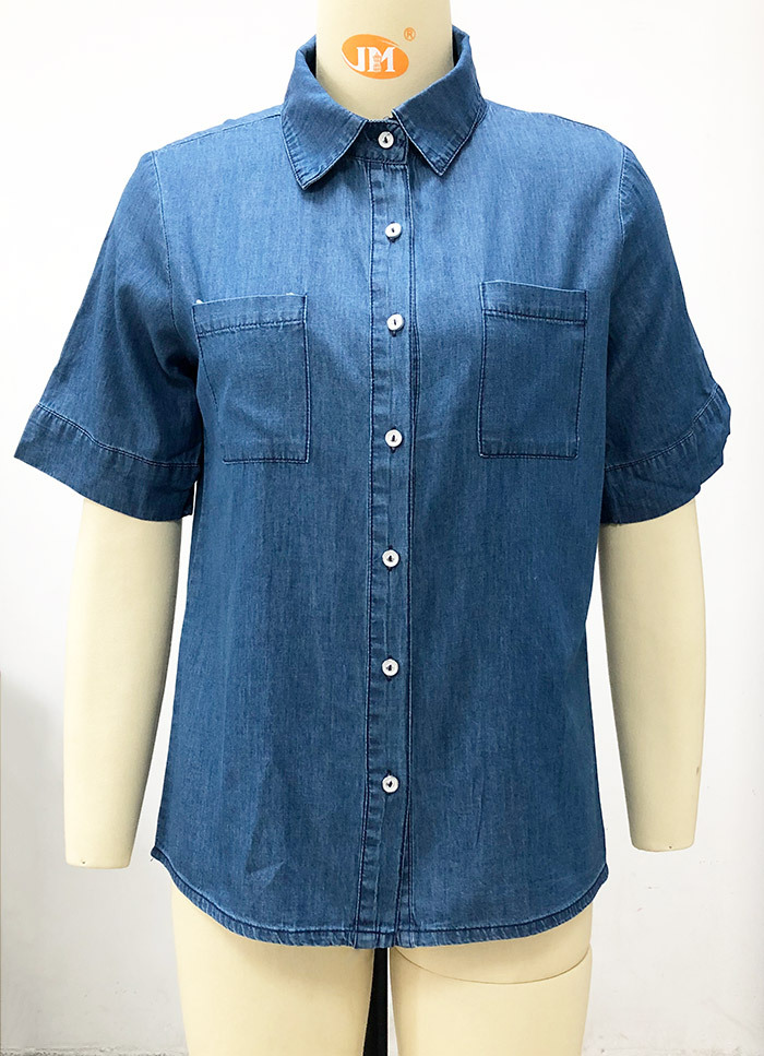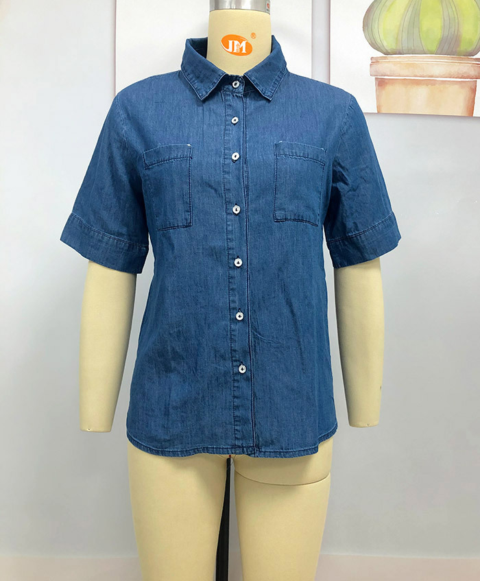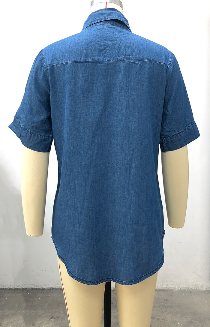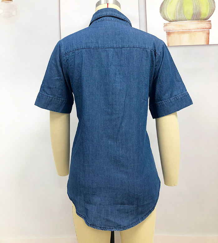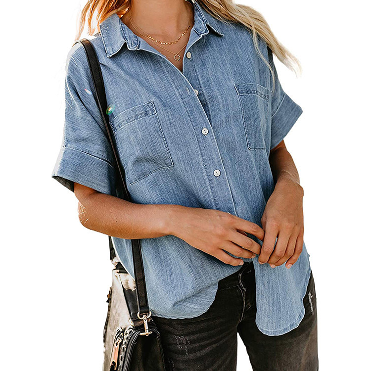 2023 봄/여름 독립 역 아마존 국경 간 Lel 반팔 데님 셔츠 유럽과 미국의 느슨한 단색 탑 여성 의류