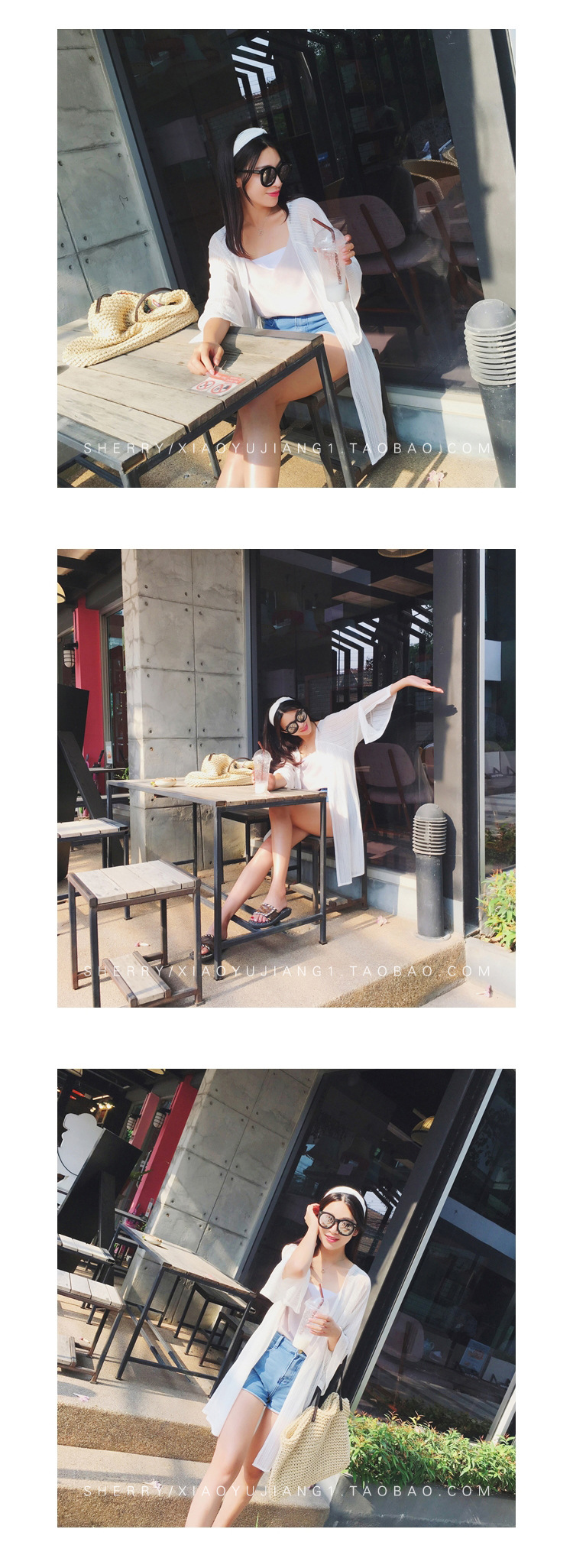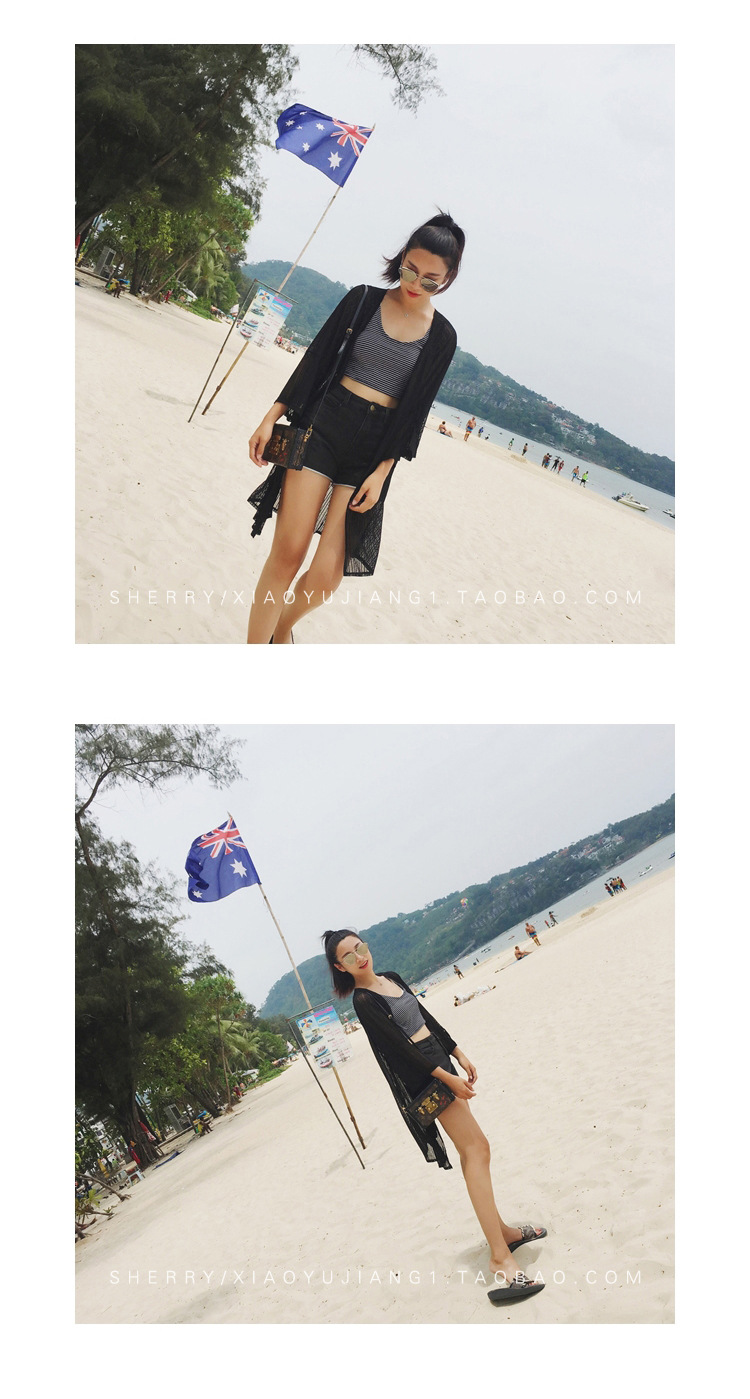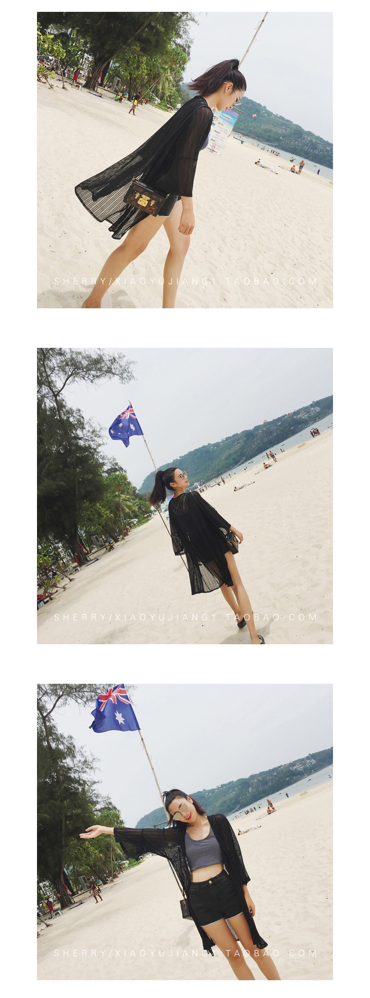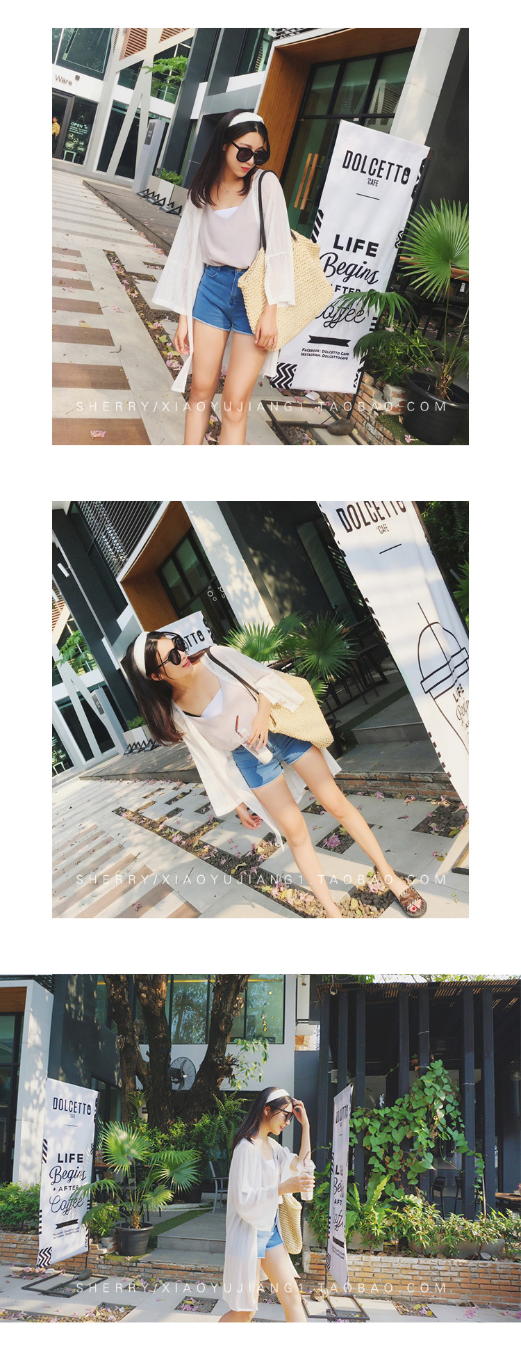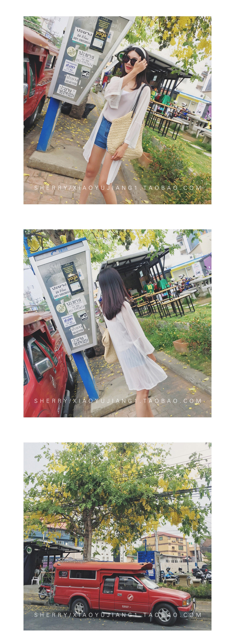 这款防晒披肩外套采用的雪纺网纱面料,手感柔软,十分轻薄,