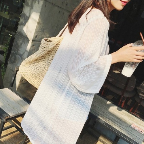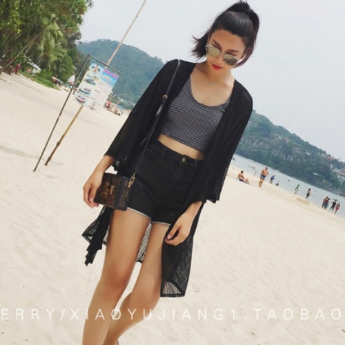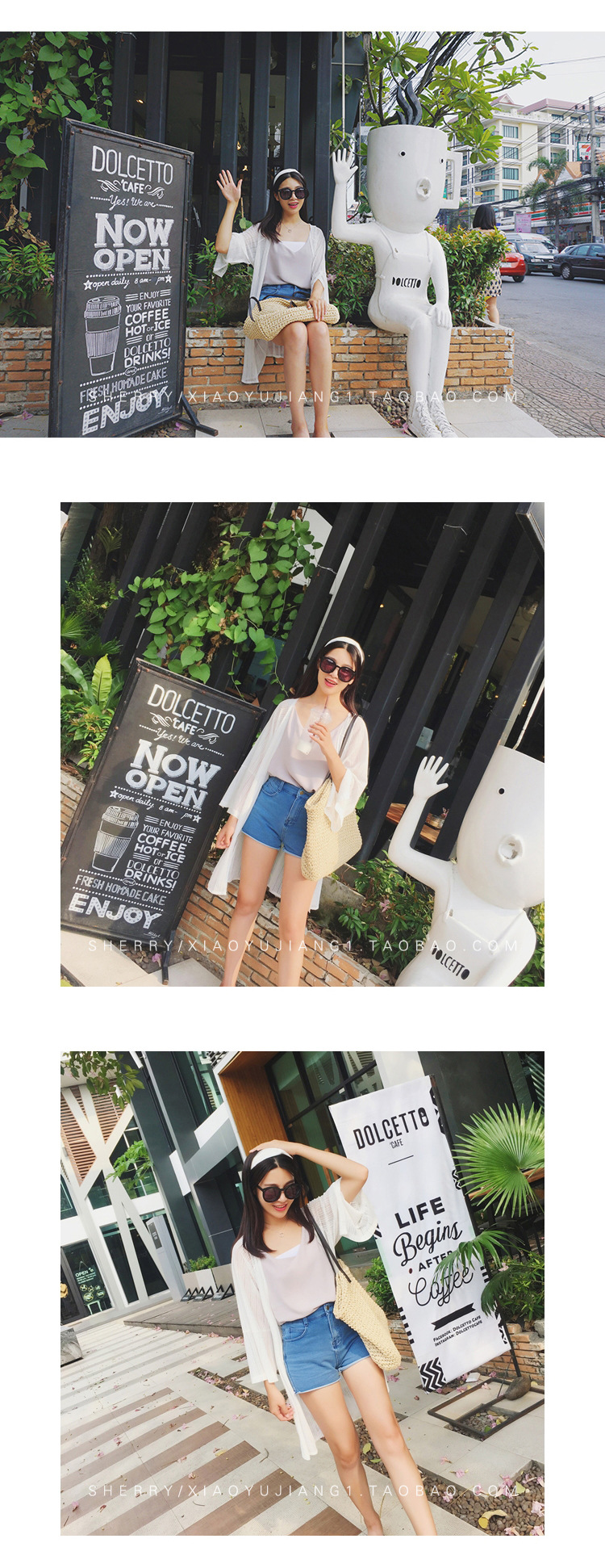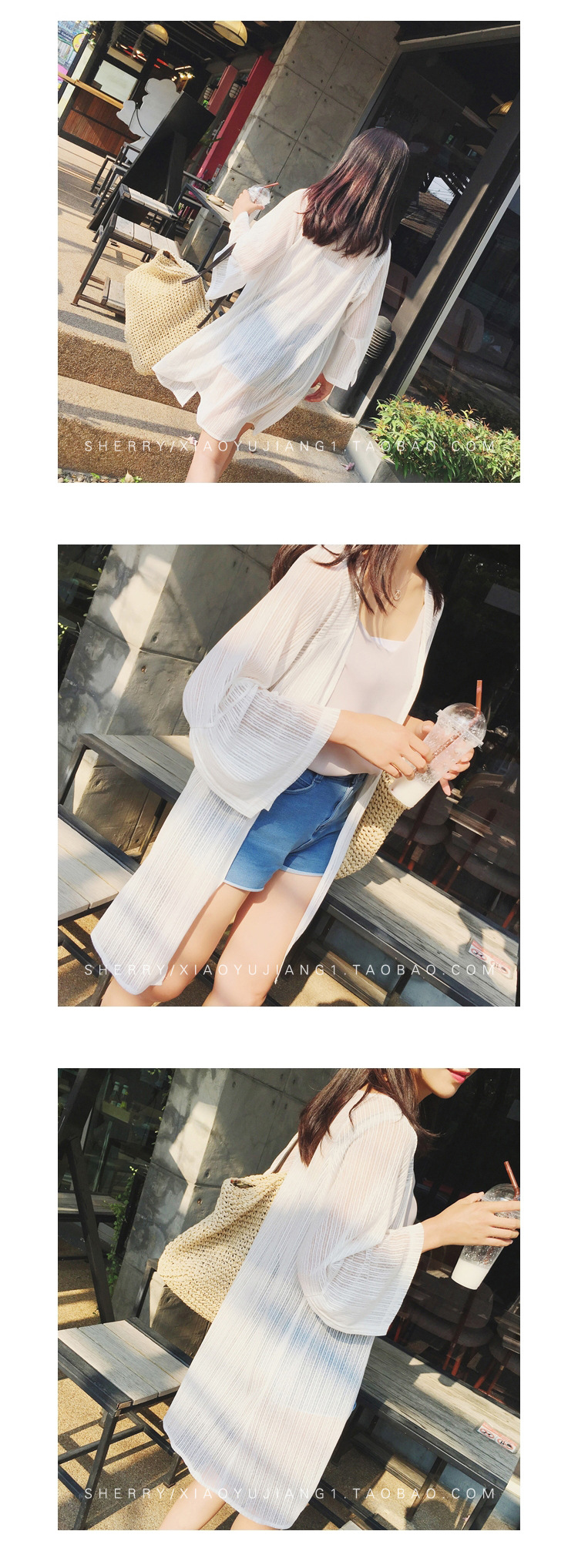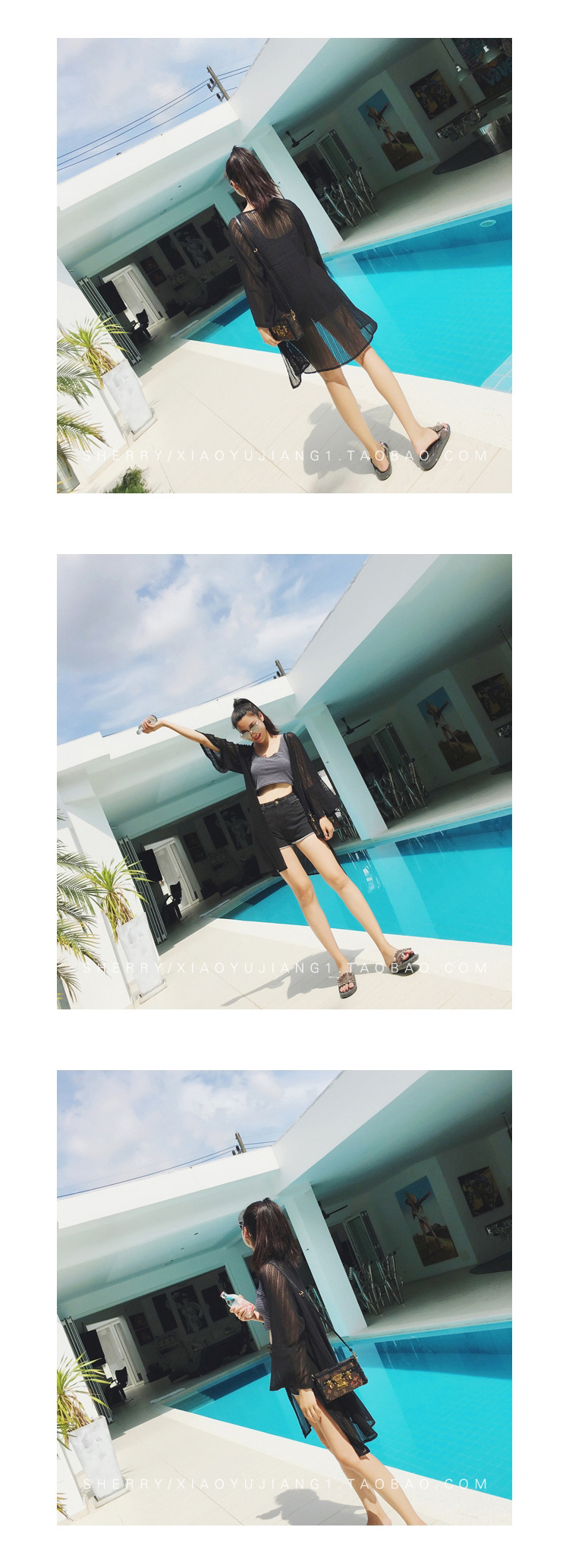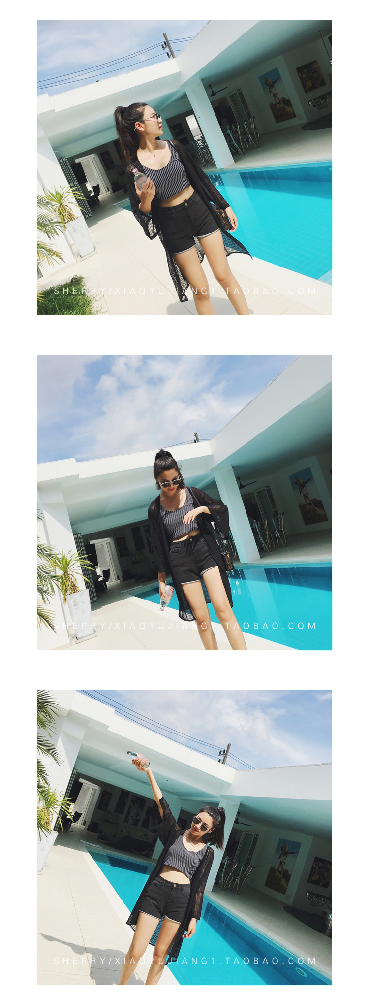 这款防晒披肩外套采用的雪纺网纱面料,手感柔软,十分轻薄,