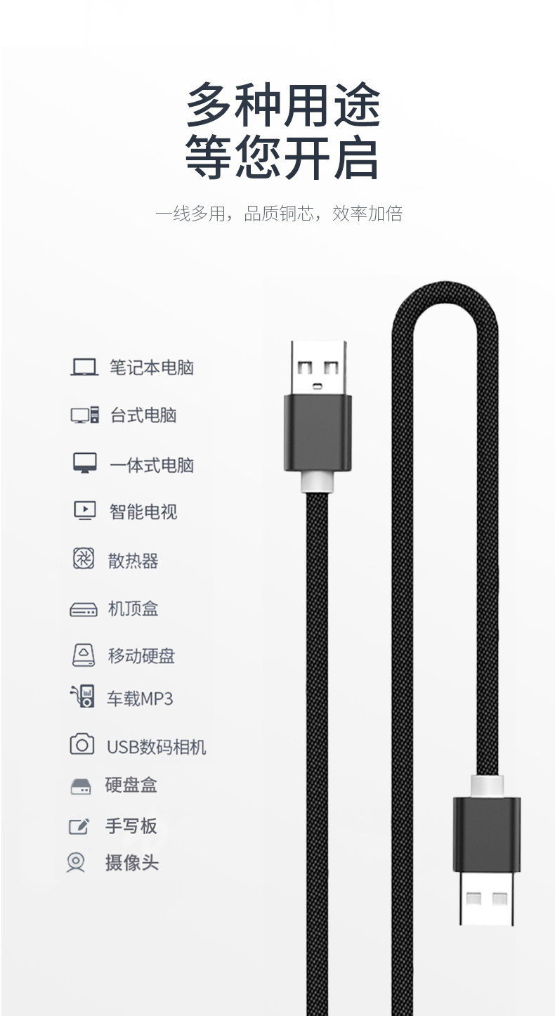 1,仅作为USB口的公对公延长,充电数据均可以。线上不带任何品牌。为本厂生产的无品牌中性数据线。