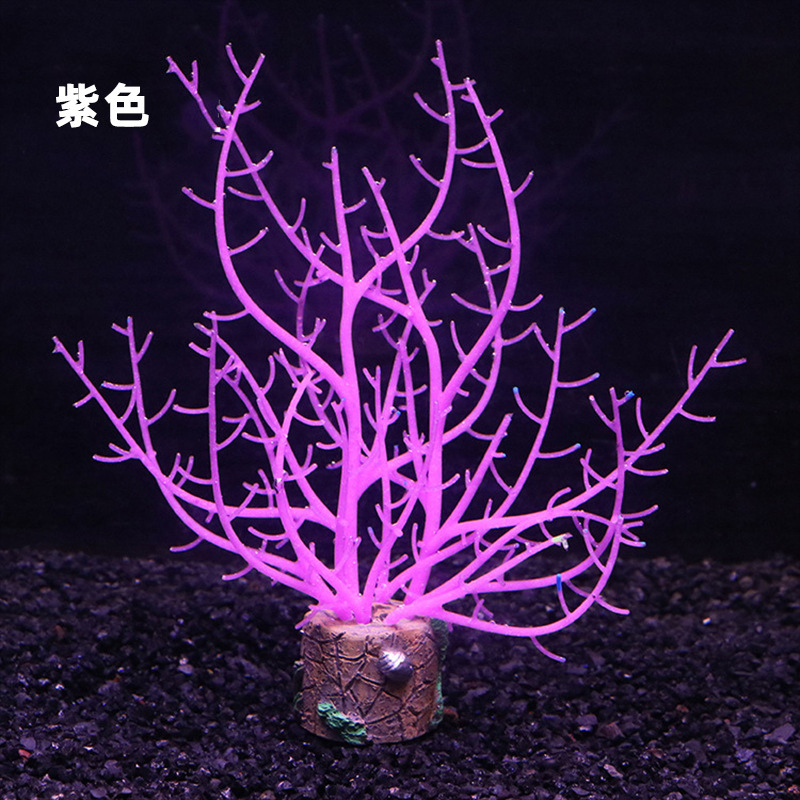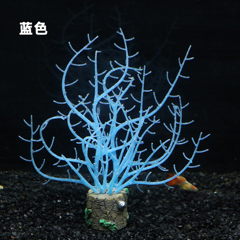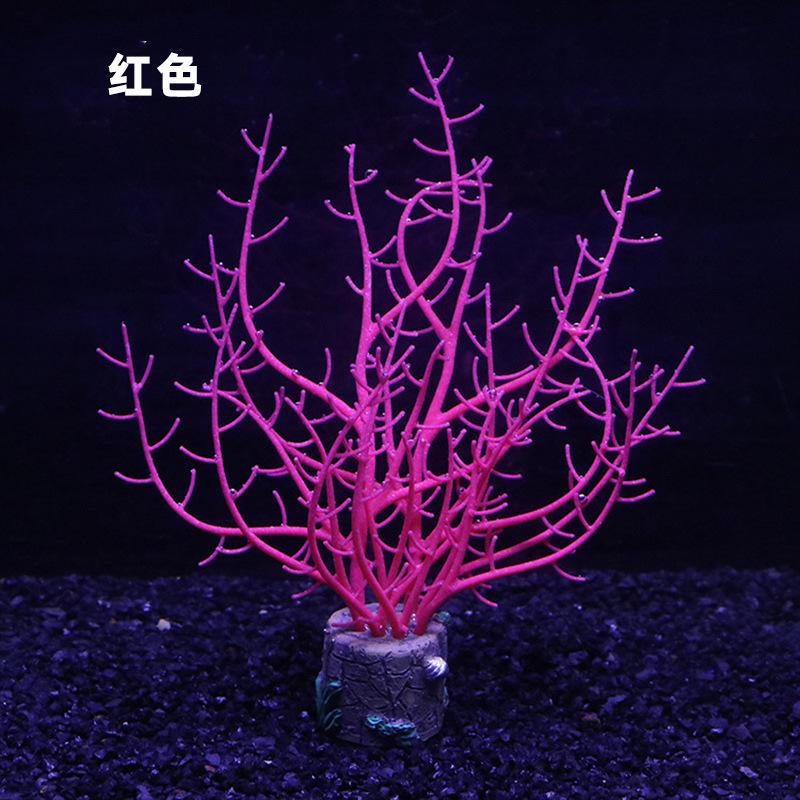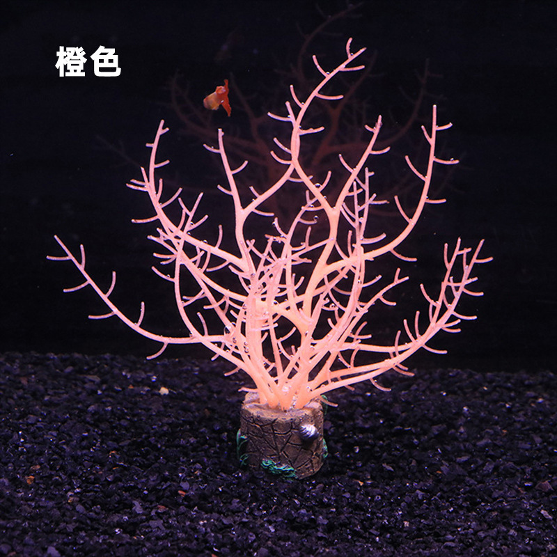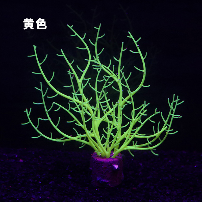 • 跨境水族馆鱼缸造景装饰彩色荧光硅胶软体珊瑚枝假水草 仿真珊瑚
