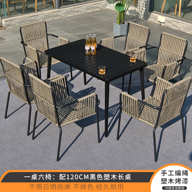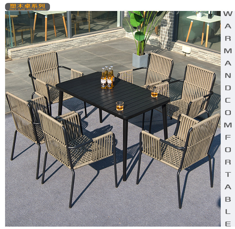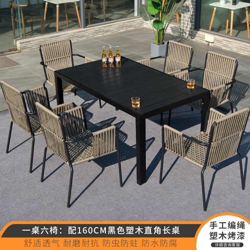 • 테이블 1 개와 의자 6 개: 160cm 검은 색 플라스틱 목재 직각 긴 테이블