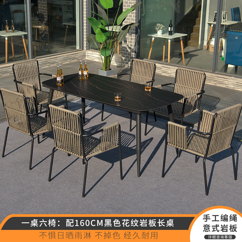 • 6 개의 의자 테이블: 160cm 블랙 패턴 암판 긴 테이블