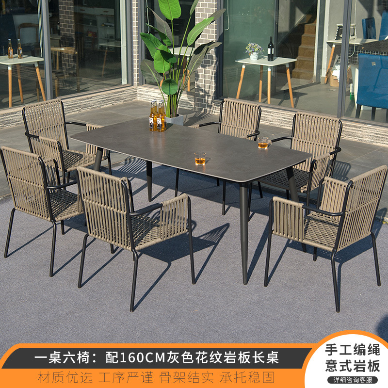 • 테이블 1 개와 의자 6 개: 160cm 회색 패턴 암판 긴 테이블