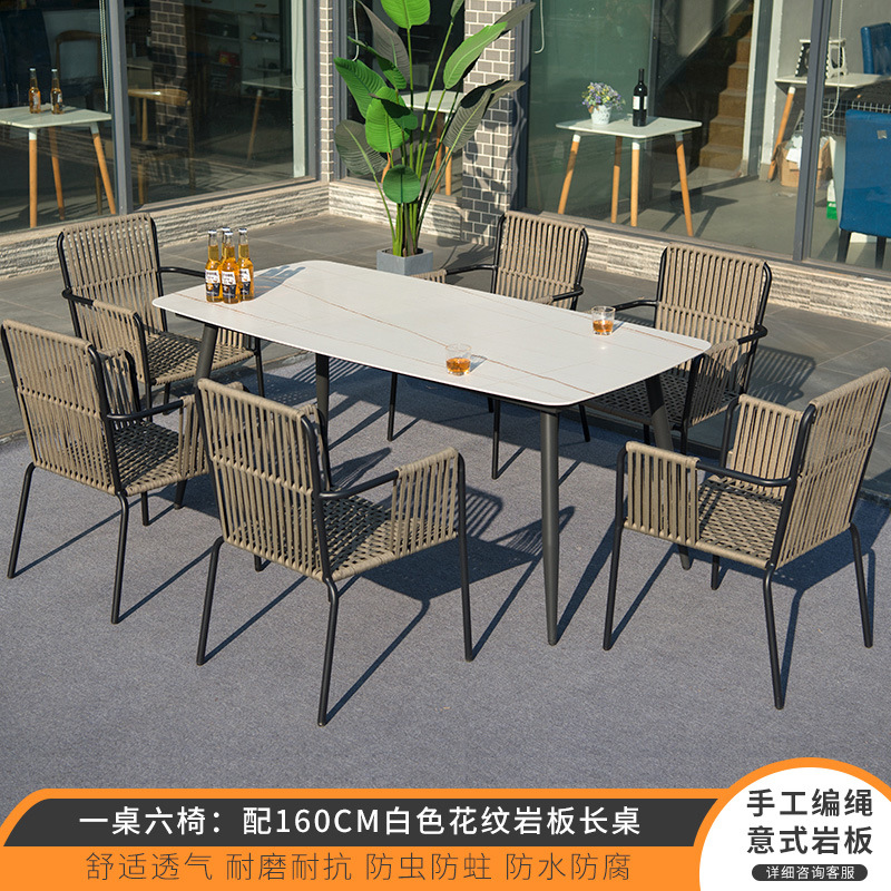 • 테이블 1 개와 의자 6 개: 160cm 흰색 무늬 바위 판 긴 테이블