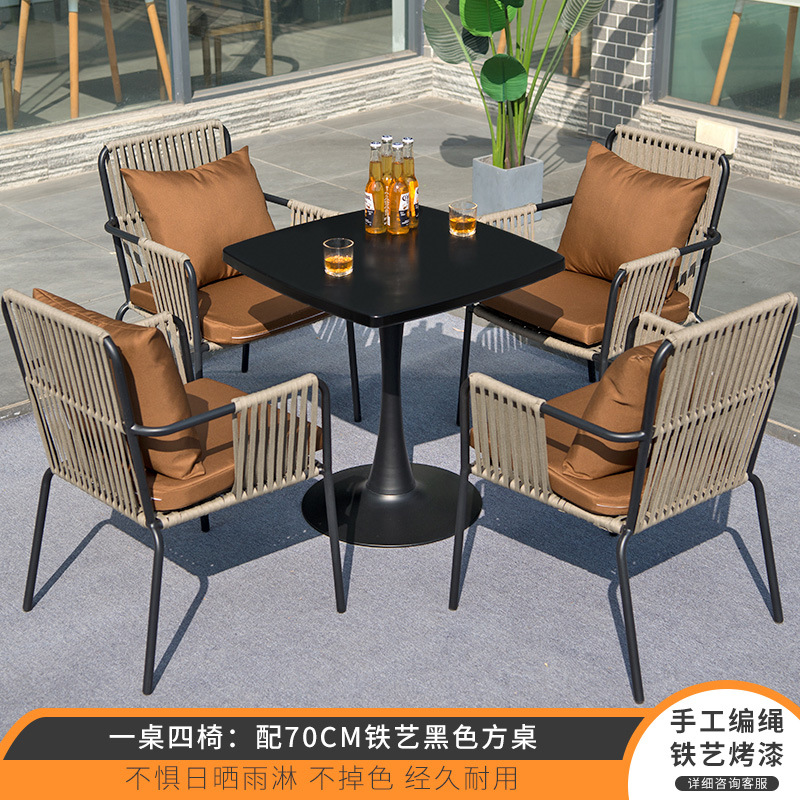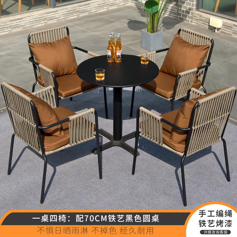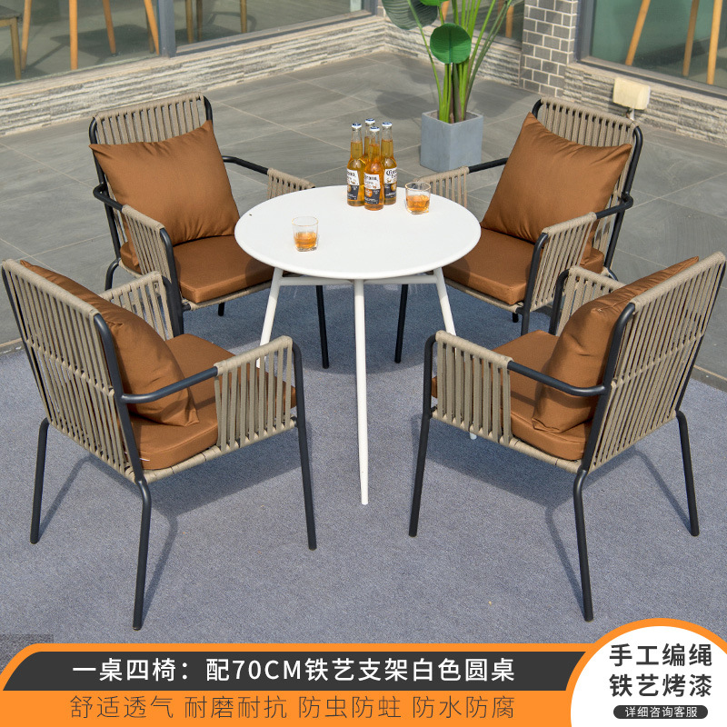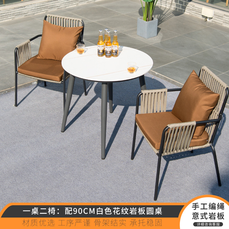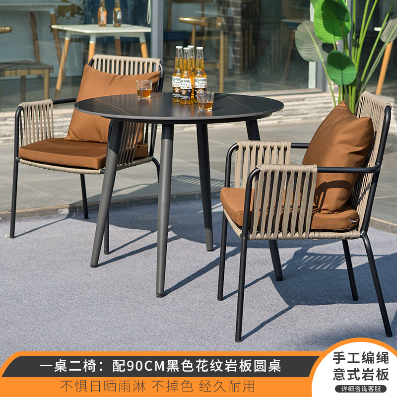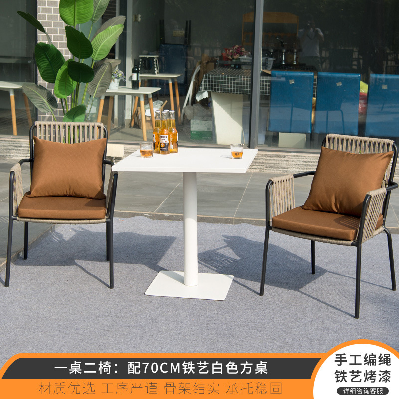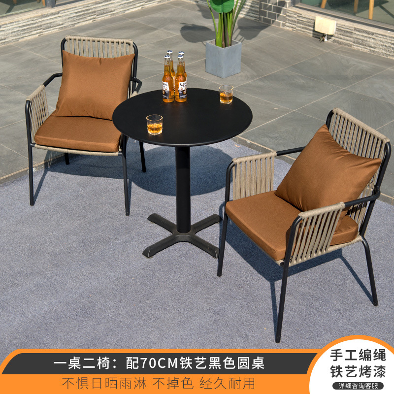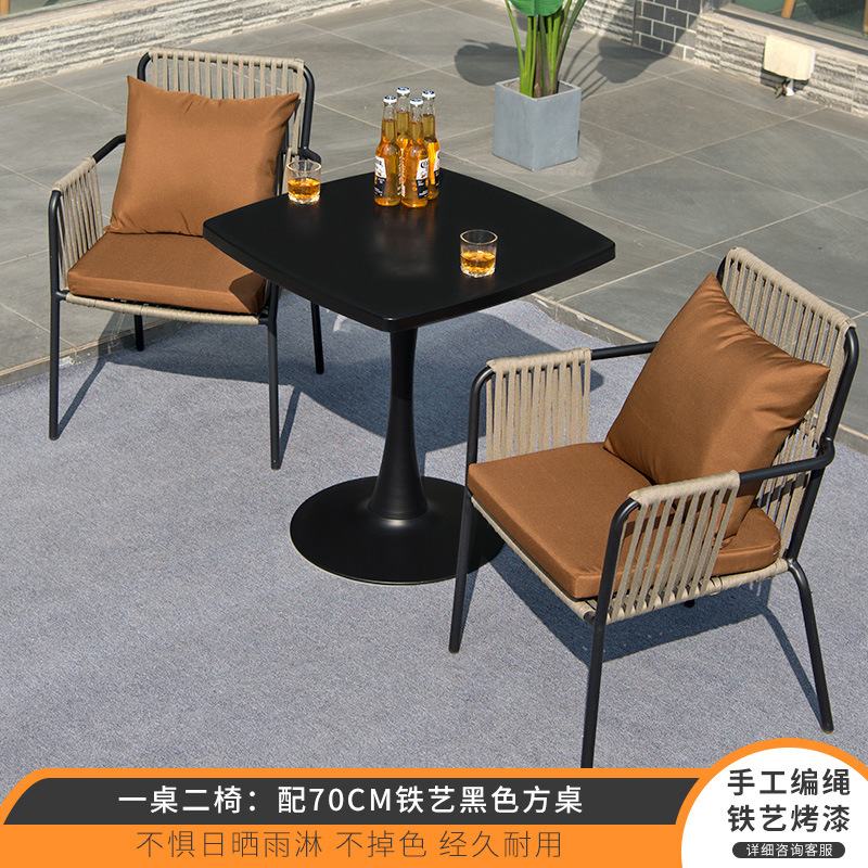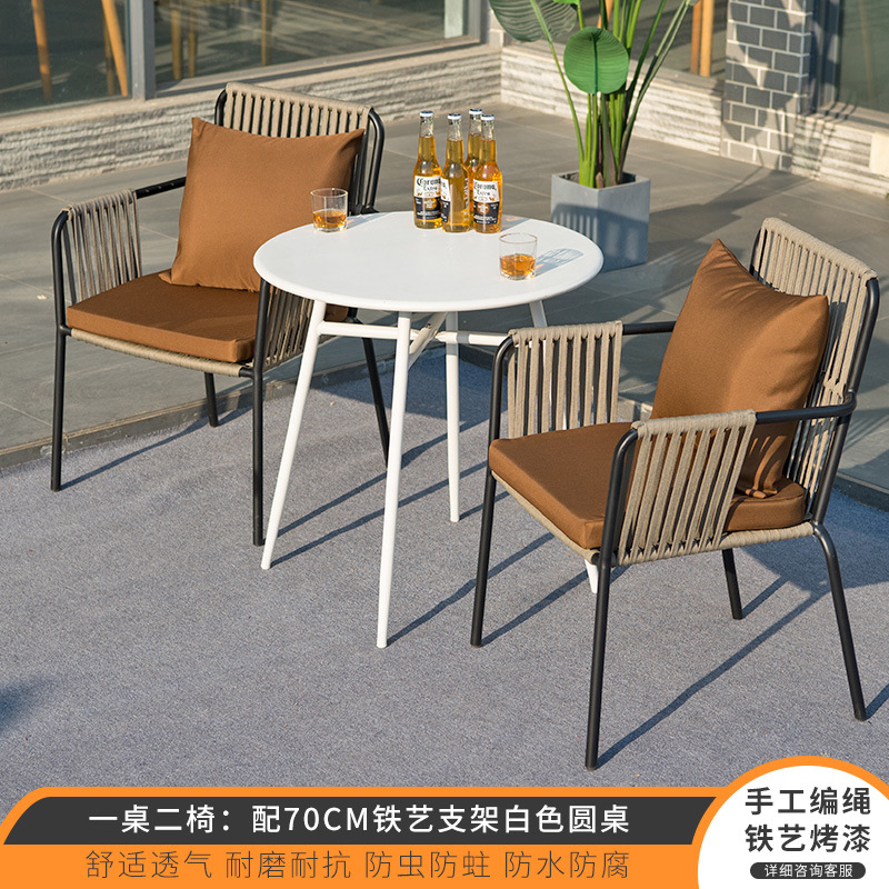 북유럽 야외 테이블과 의자 3피스 조합 안뜰 야외 철 인터넷 연예인 발코니 정원 레저 등나무 의자 작은 식탁스토어 가기