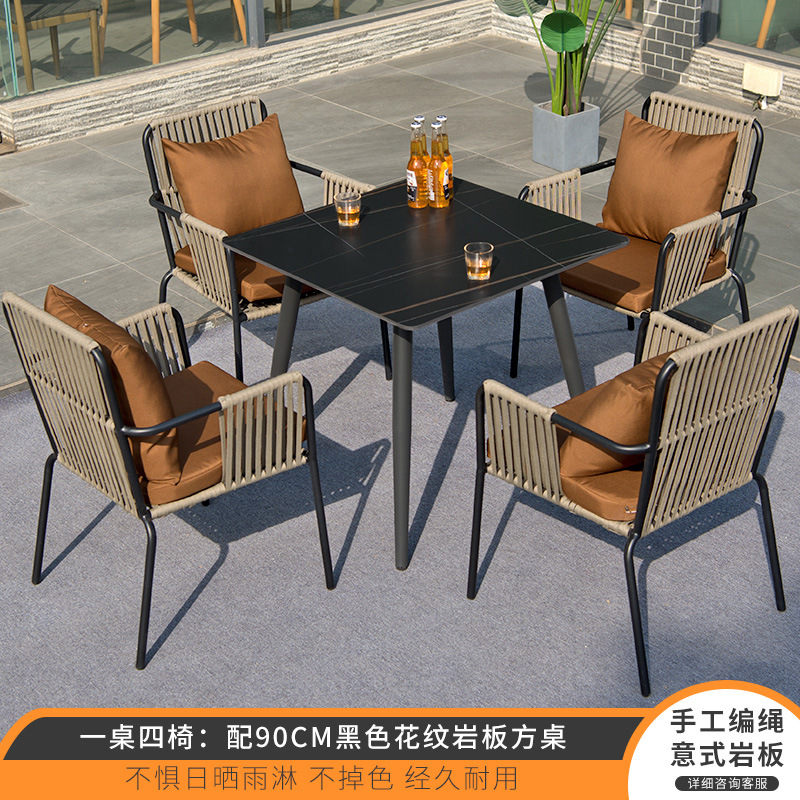 • 테이블 1 개와 의자 4 개: 90cm 검은 무늬 암판 사각 테이블