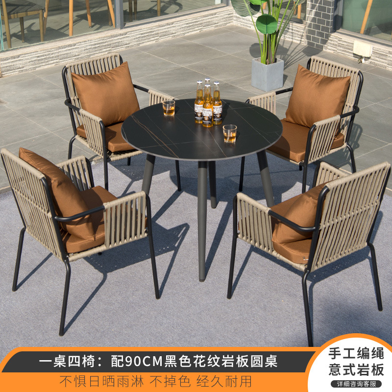 • 테이블 1 개와 의자 4 개: 90cm 검은 무늬 암판이있는 원형 테이블