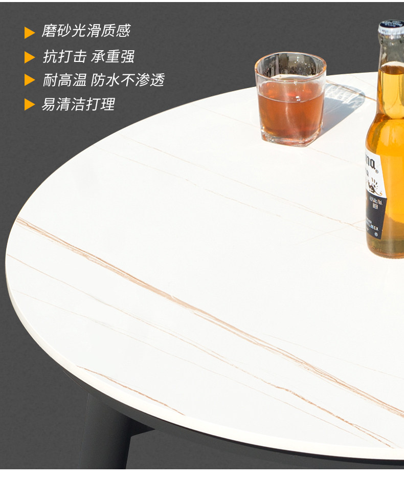 • 테이블 1 개와 의자 4 개: 90cm 흰색 무늬 암판이있는 원형 테이블
