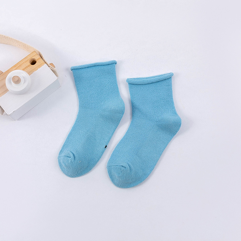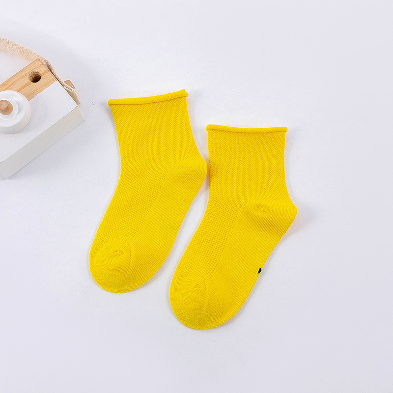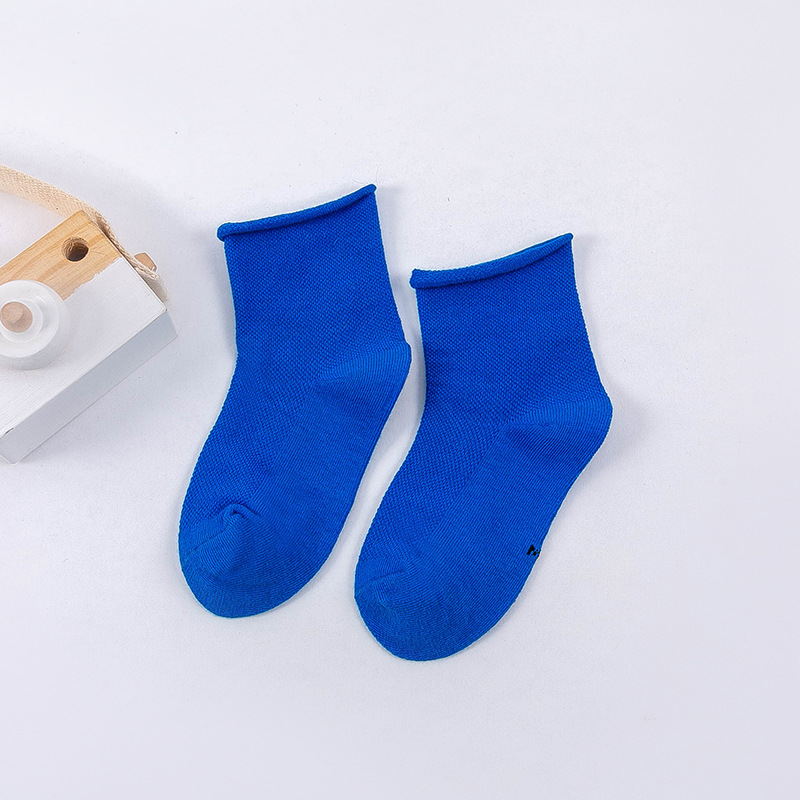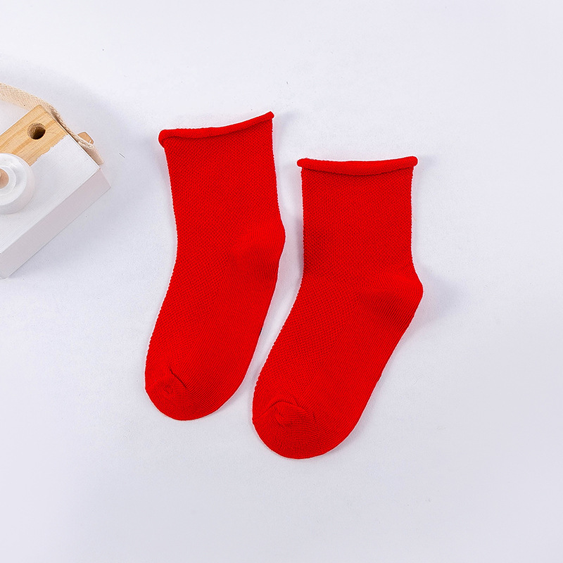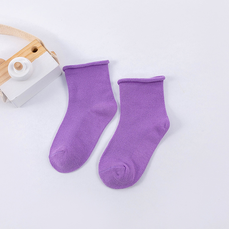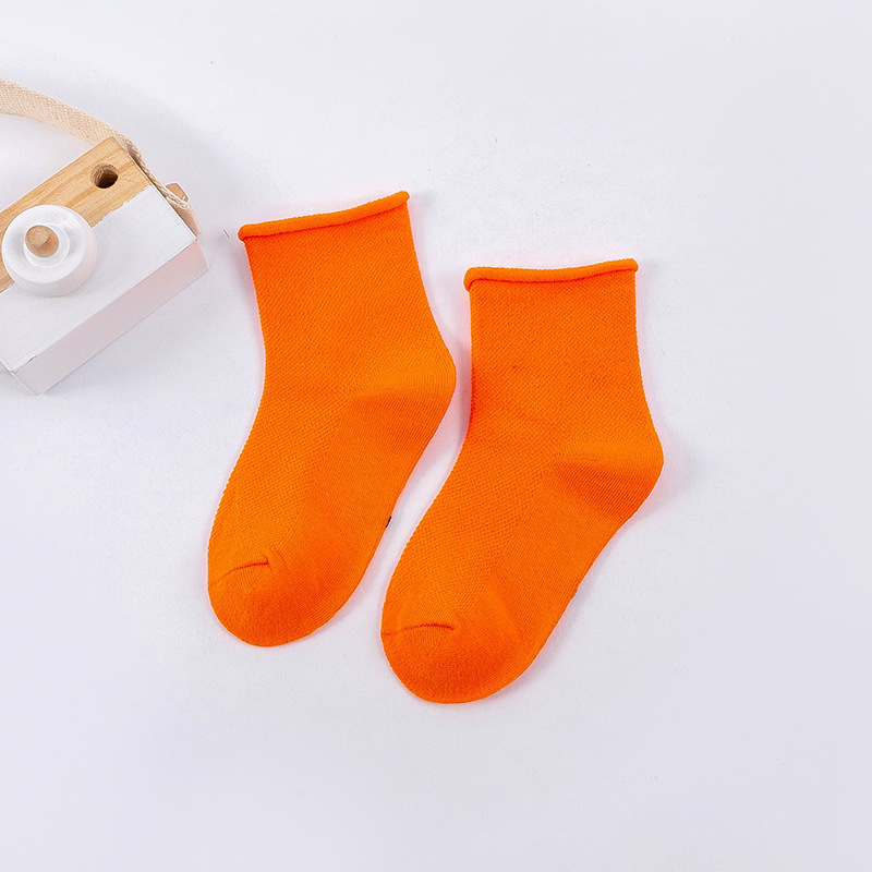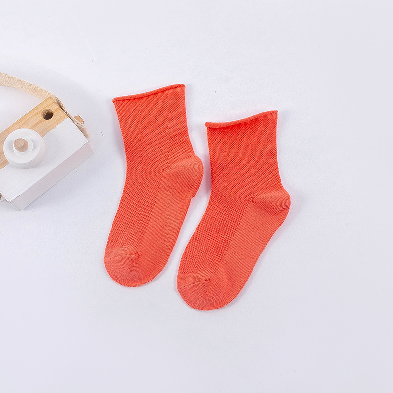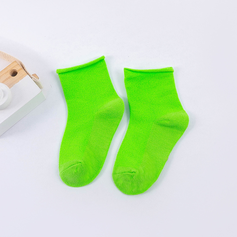 봄과 여름 새로운 어린이 양말 캔디 컬러 메쉬 튜브 조수 양말 소년과 소녀 단색 컬링 아기 양말 도매