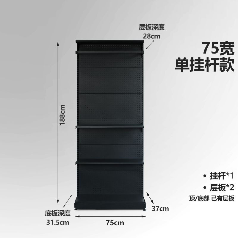 • 싱글 레일 옷장 (75 와이드) 블랙