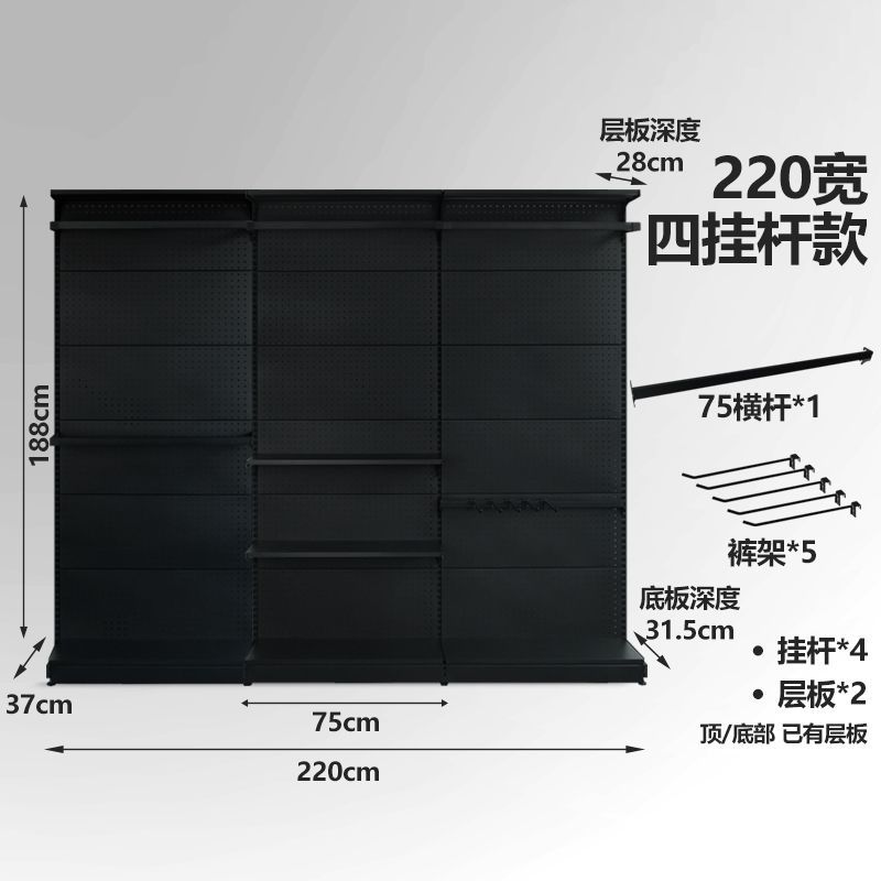 • 4 개의 교수형 바 옷장 (220 와이드) 블랙