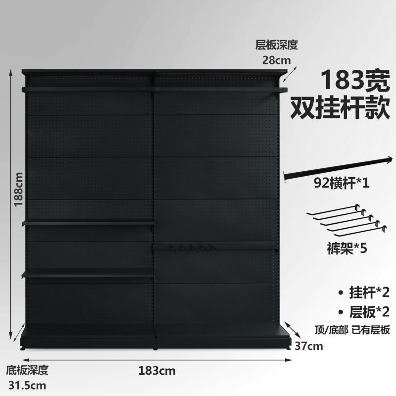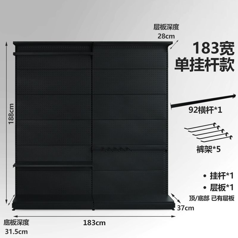 • 더블 행잉 로드 옷장 (183 와이드) 블랙
