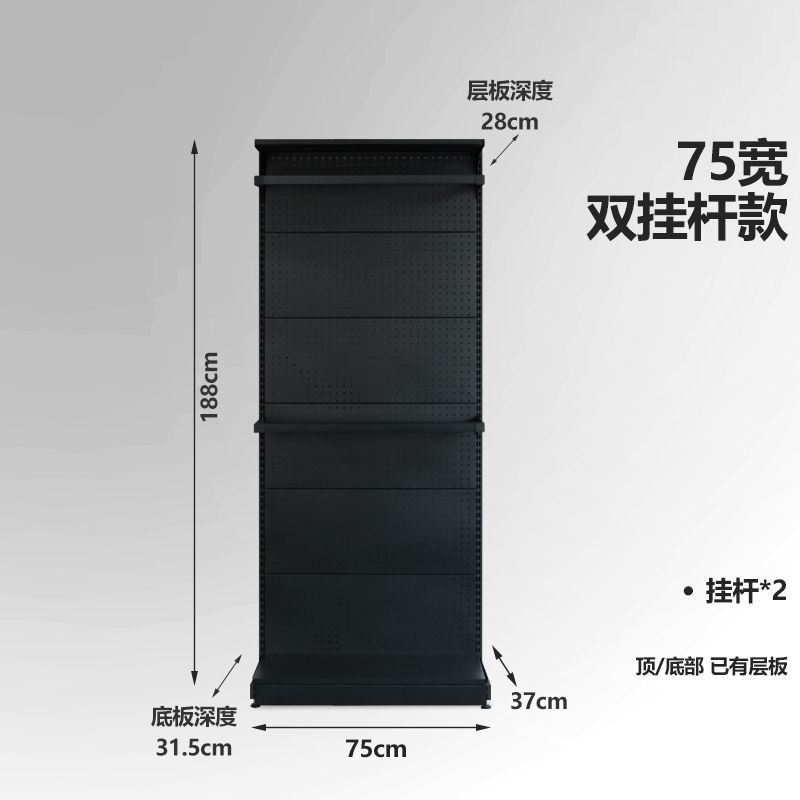• 더블 행잉 로드 옷장 (75 와이드) 블랙