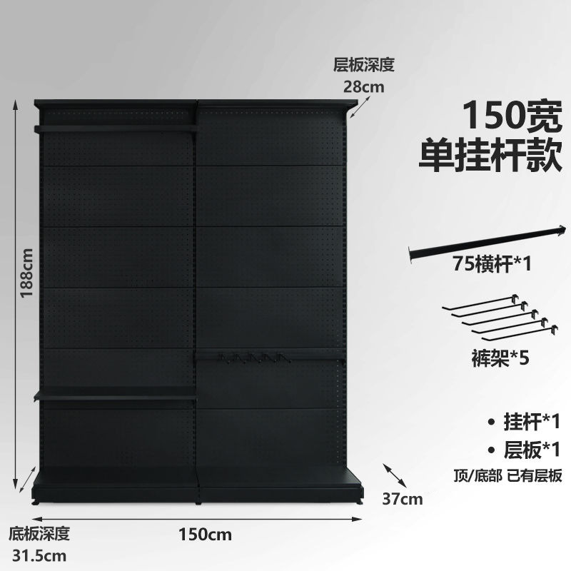 • 싱글 교수형 막대 옷장 (150 와이드) 블랙