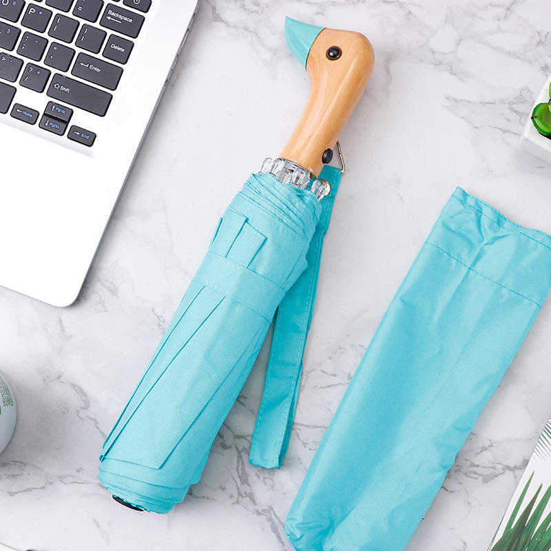 우산 여성용 3 중 8 본 자동 우산 양지 바르고 비가 오는 우산 여성용 귀여운 오리 머리 창조적 인 우산 샤먼 공장 도매스토어 가기