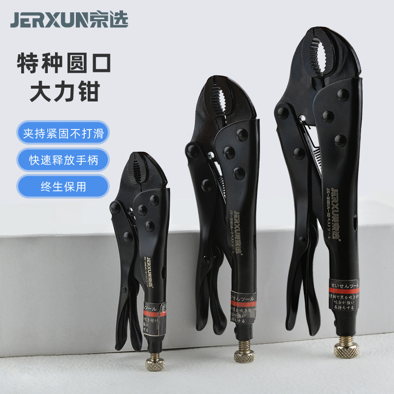 京选大力钳圆嘴圆口尖嘴夹钳子平口10寸多功能快速扳手固定夹牢钳