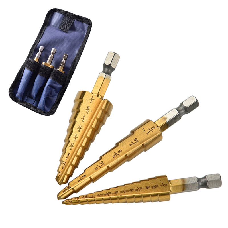 육각 생크 인치 탑 드릴 티타늄 도금 스텝 드릴 구멍 오프너 핸드 전기 드릴 드릴링 툴 스텝 드릴 세트