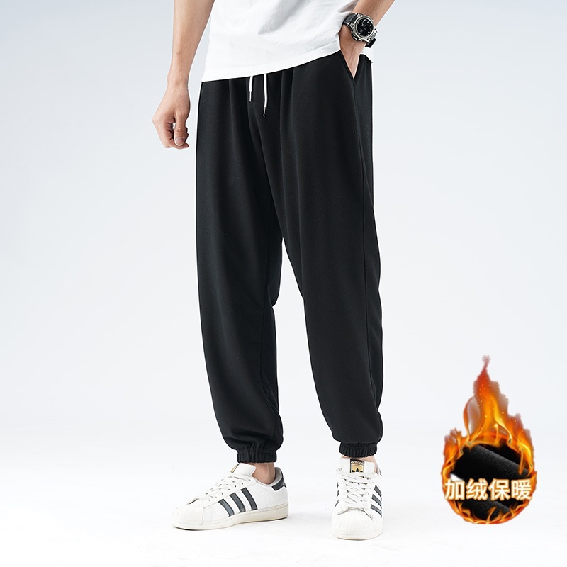2023 스포츠 바지 남성용 기모 느슨한 스트레이트 다리 가을과 겨울 농구 바지 남성용 스웨트 팬츠 트렌디 캐주얼 바지스토어 가기