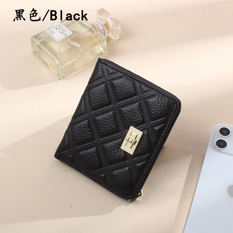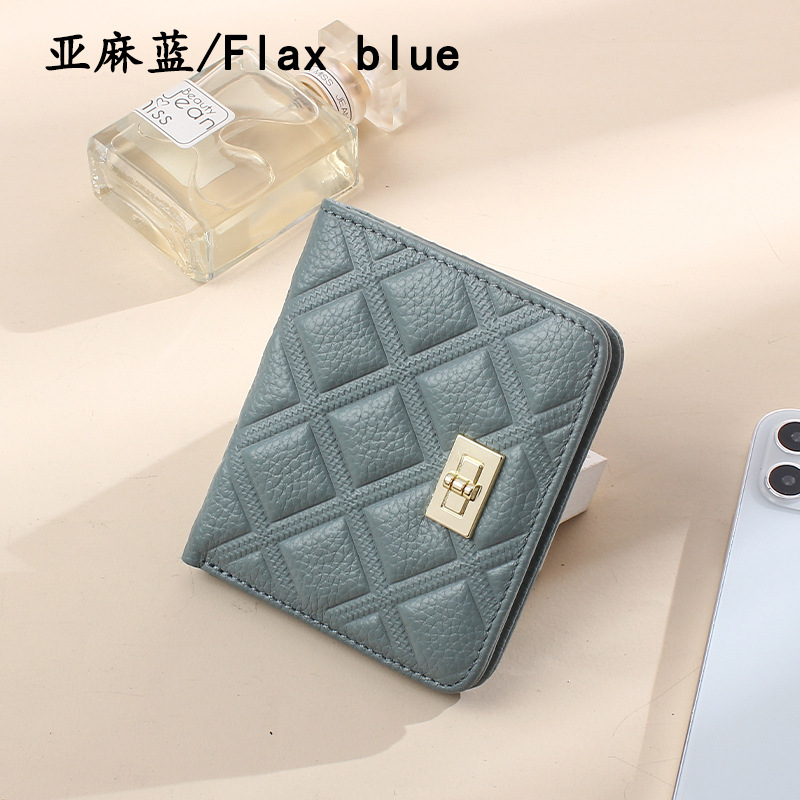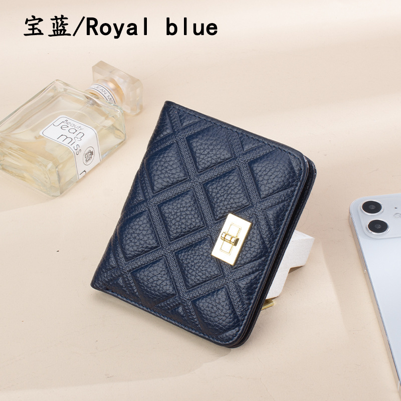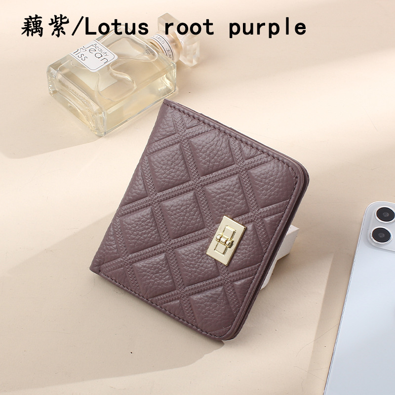첫 번째 레이어 소가죽 짧은 여성 지갑 정품 가죽 패션 마름모꼴 버클 ID 카드 가방 초박형 지갑 동전 지갑스토어 가기