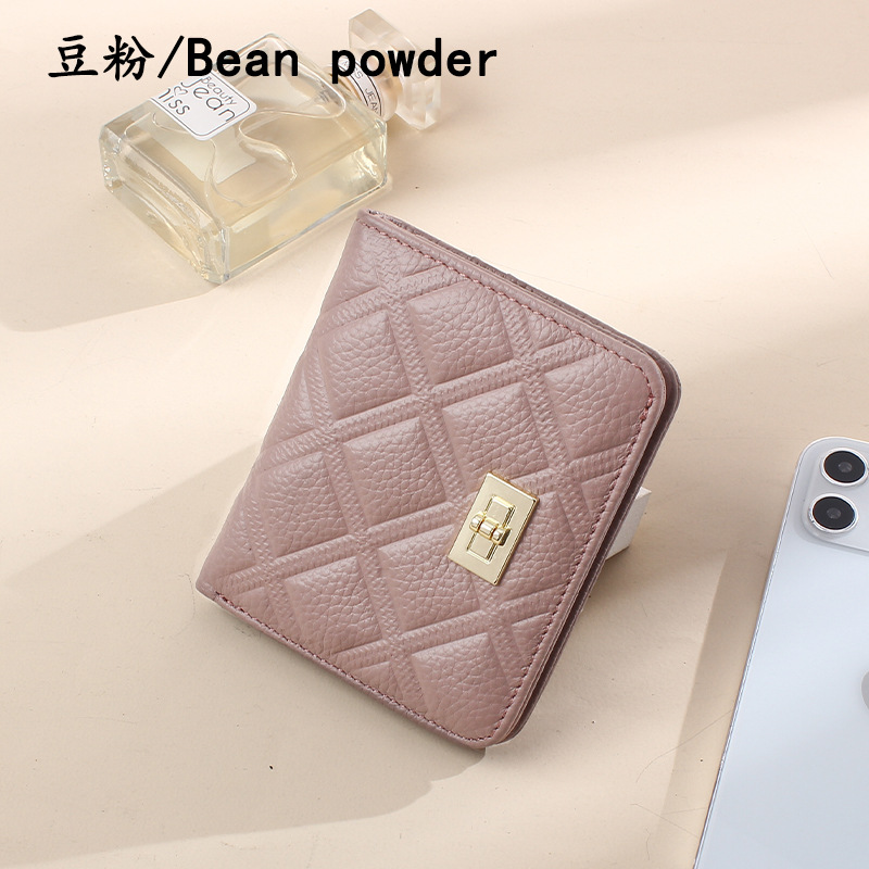 첫 번째 레이어 소가죽 짧은 여성 지갑 정품 가죽 패션 마름모꼴 버클 ID 카드 가방 초박형 지갑 동전 지갑