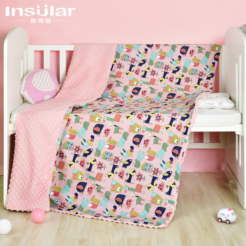 全棉卡通婴儿盖毯宝宝安抚豆豆盖毯抱被抱毯可水洗推车盖毯
