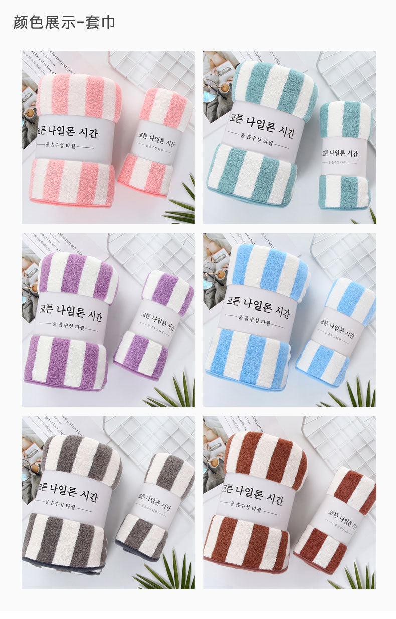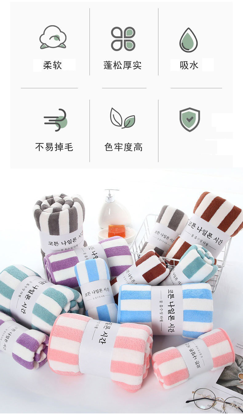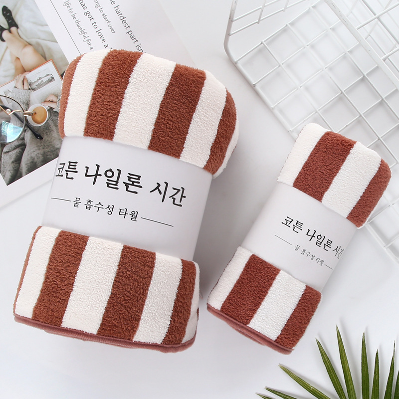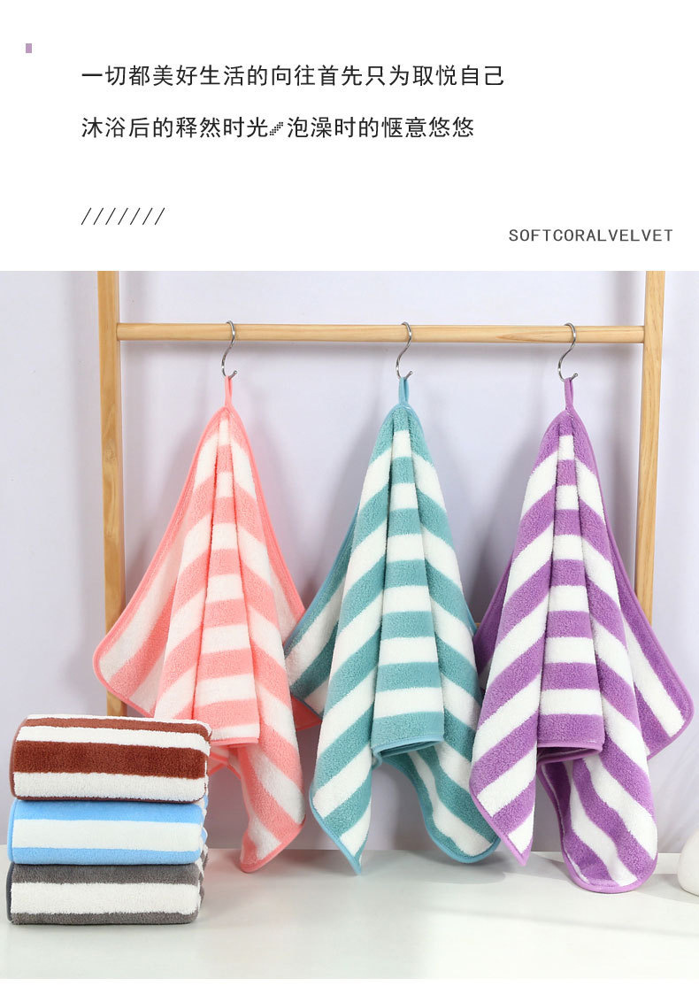 암호화되고 두꺼워진 산호 벨벳 수건 선물 흡수성 목욕 수건 부드러운 줄무늬 작은 수건 제조 업체 가정용 사각형 수건