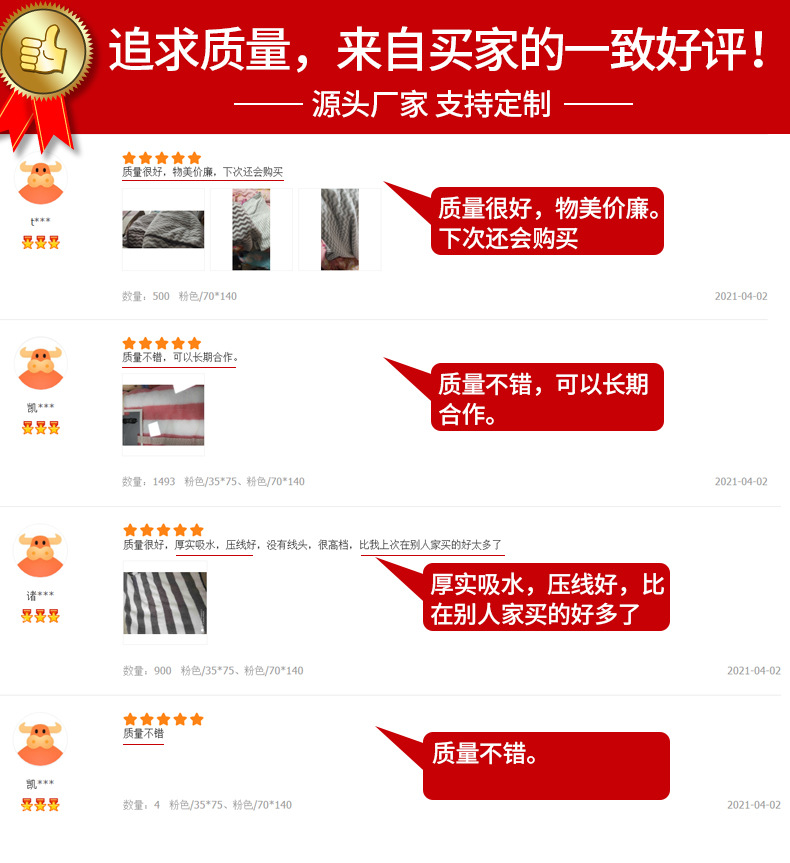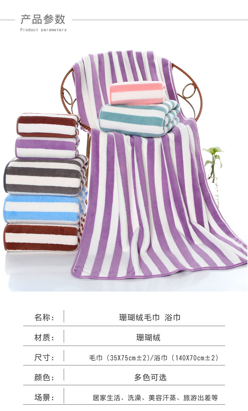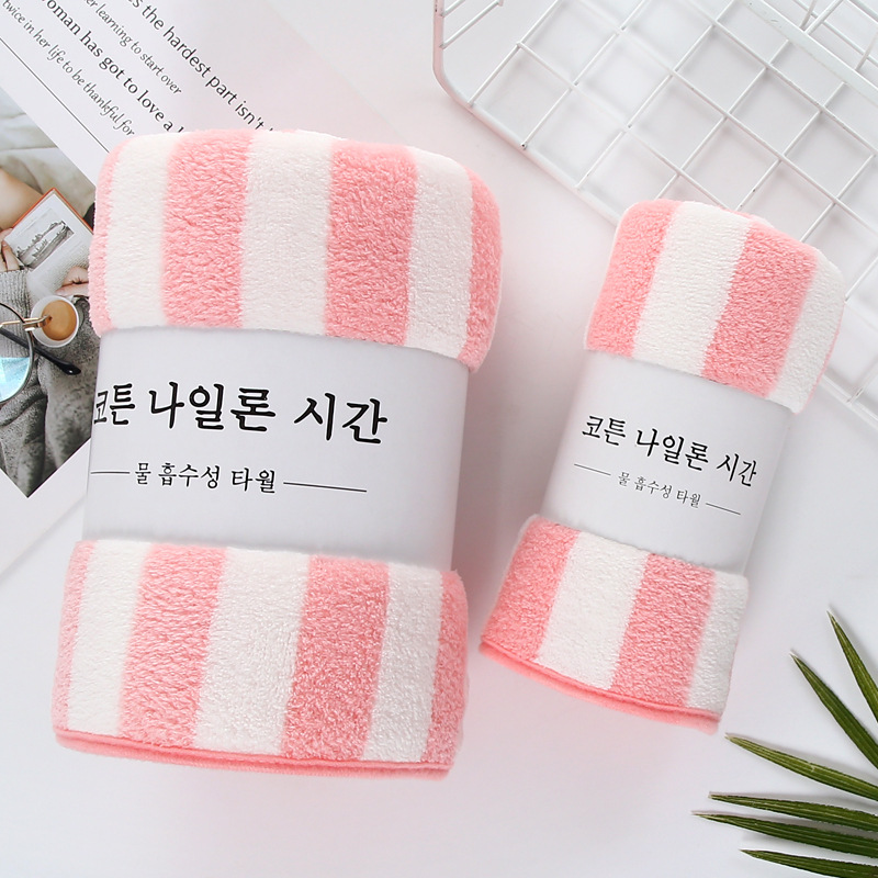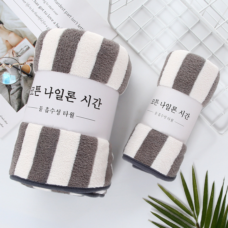 암호화되고 두꺼워진 산호 벨벳 수건 선물 흡수성 목욕 수건 부드러운 줄무늬 작은 수건 제조 업체 가정용 사각형 수건