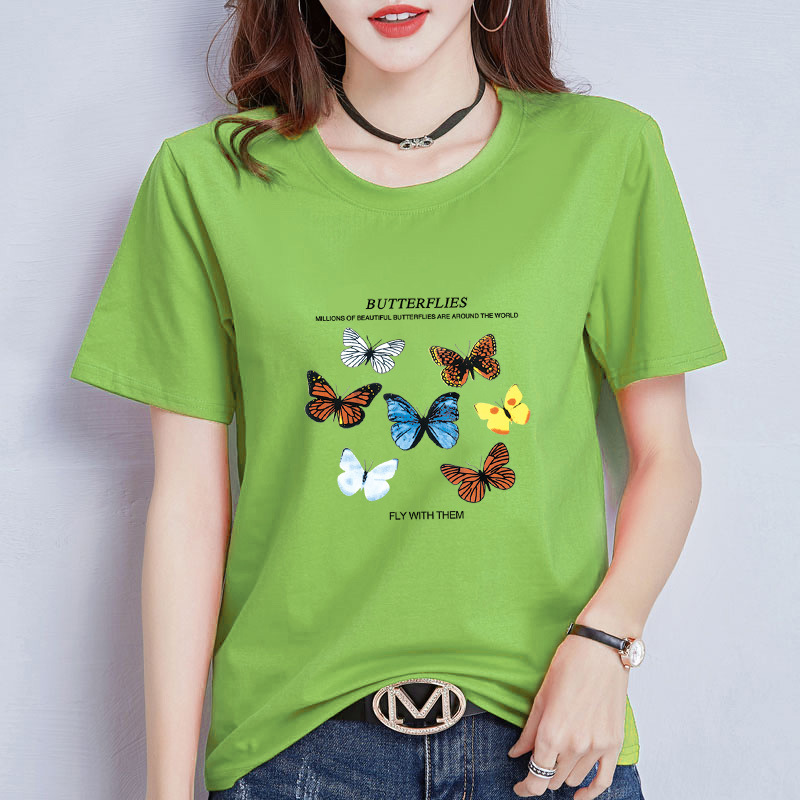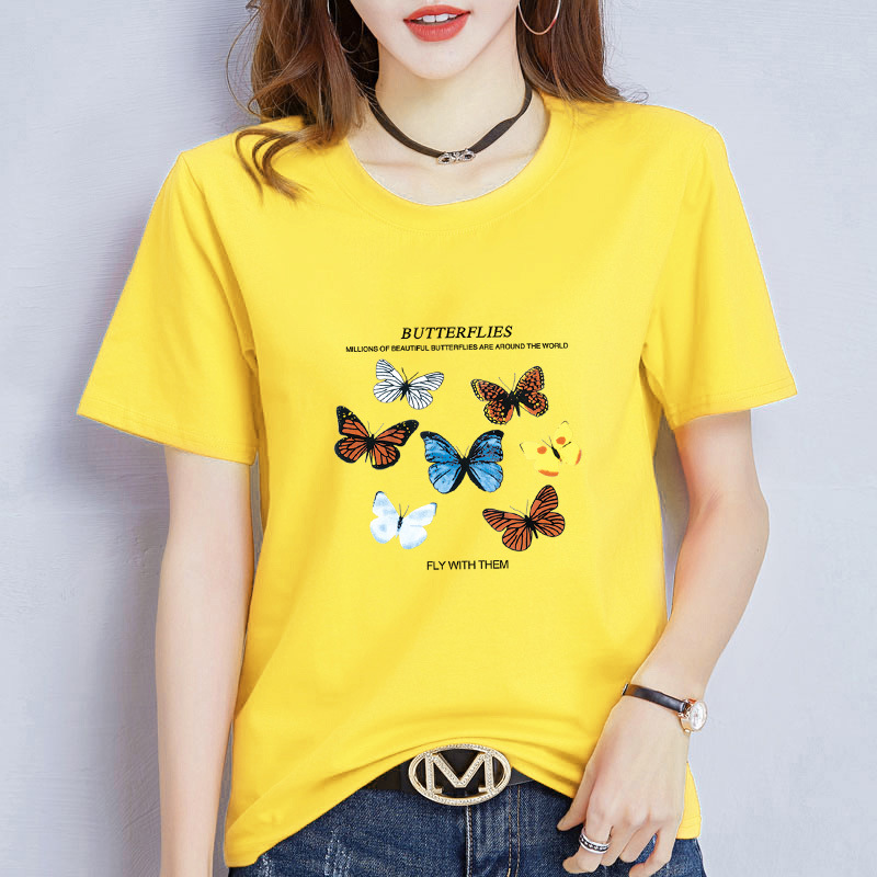 [재고] 여름 루즈한 라운드 넥 프린트 반팔 티셔츠 여성용 트렌디한 한국 루즈한 학생 반팔 탑스토어 가기