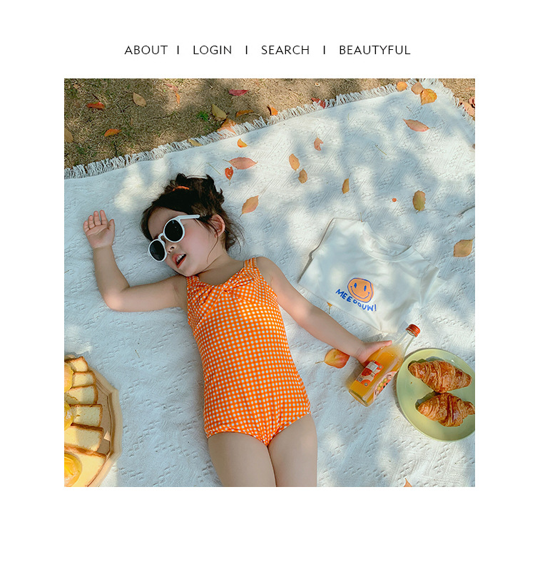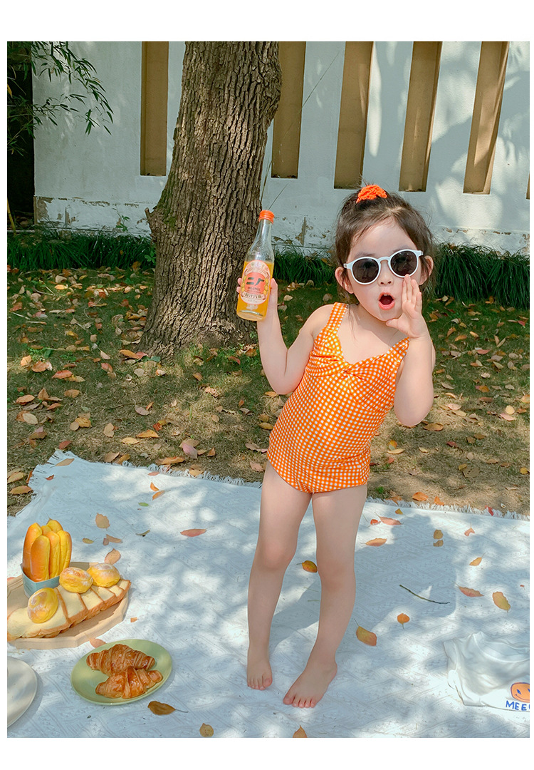 소녀의 활 원피스 수영복 2023 여름 아기 소녀의 귀여운 격자 무늬 비키니 원피스 비치 수영복스토어 가기