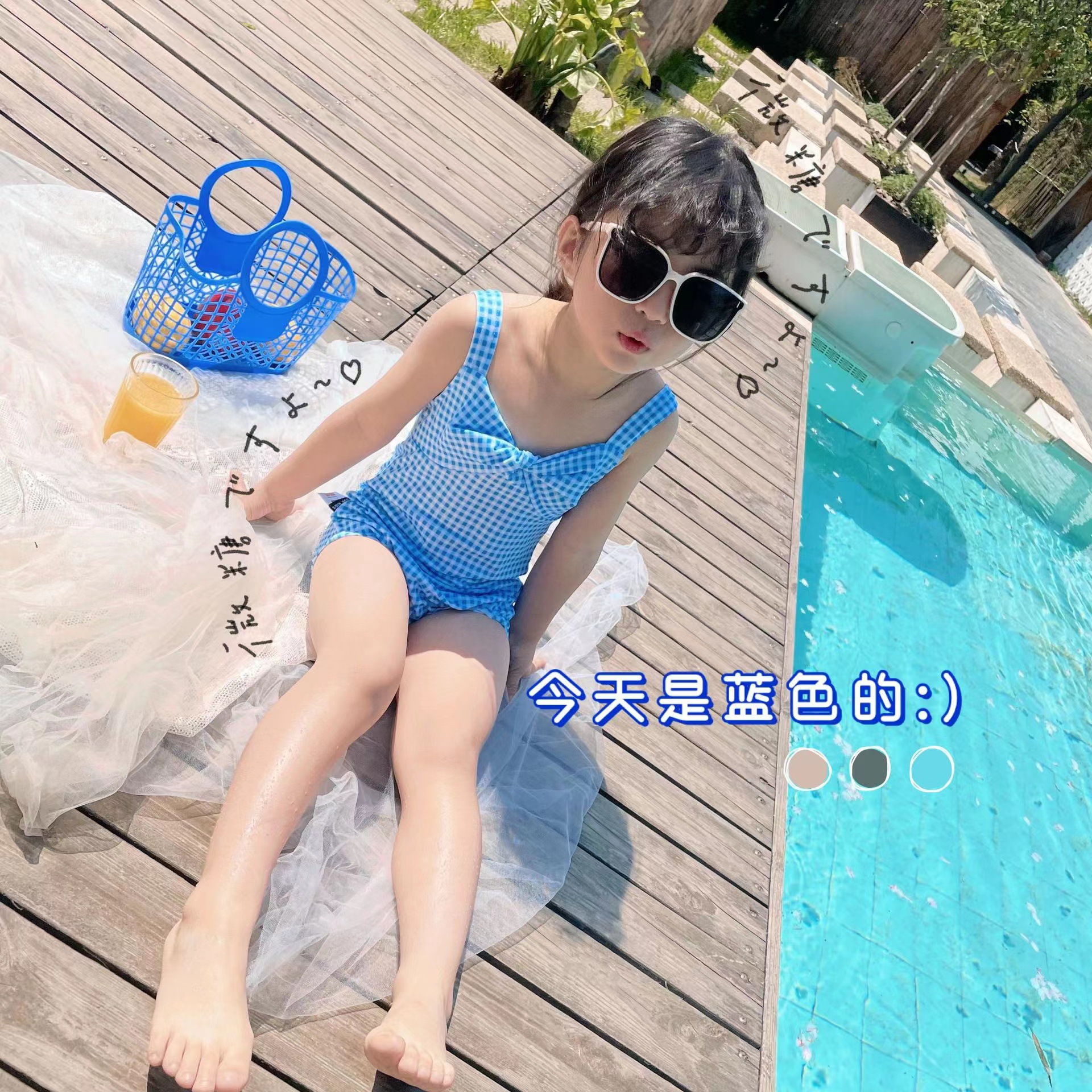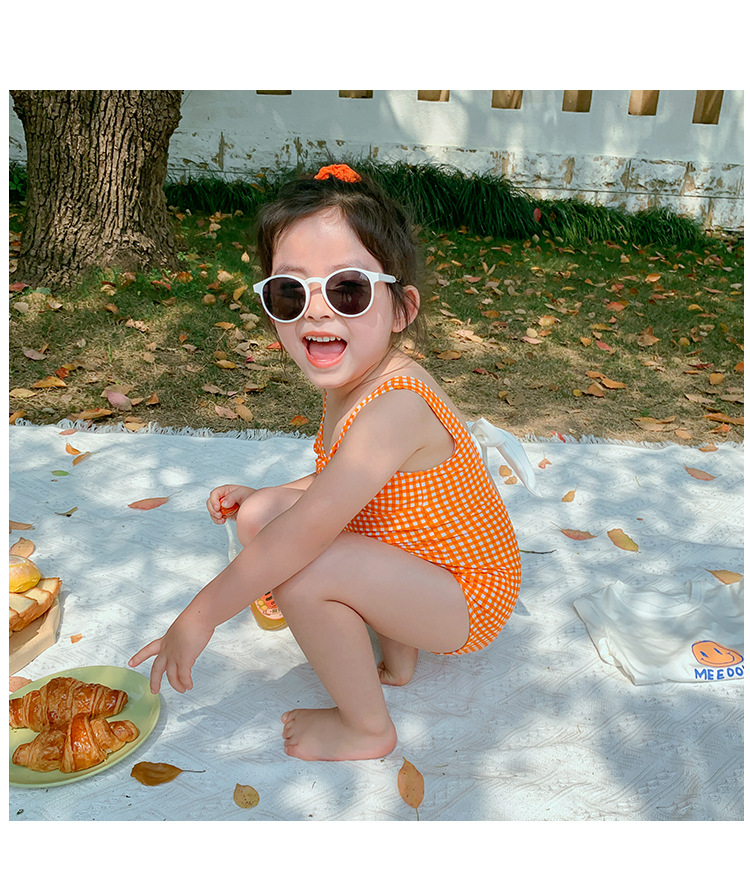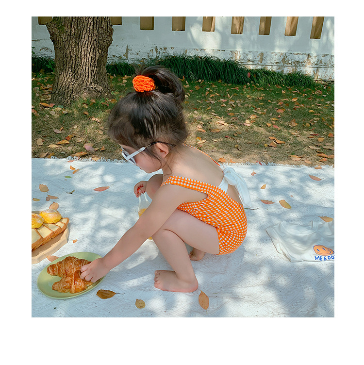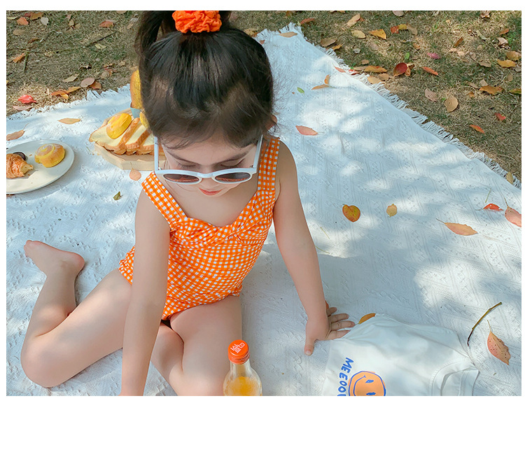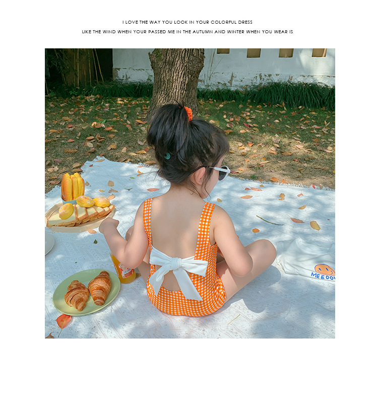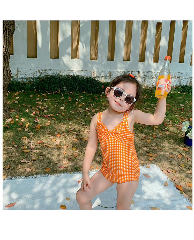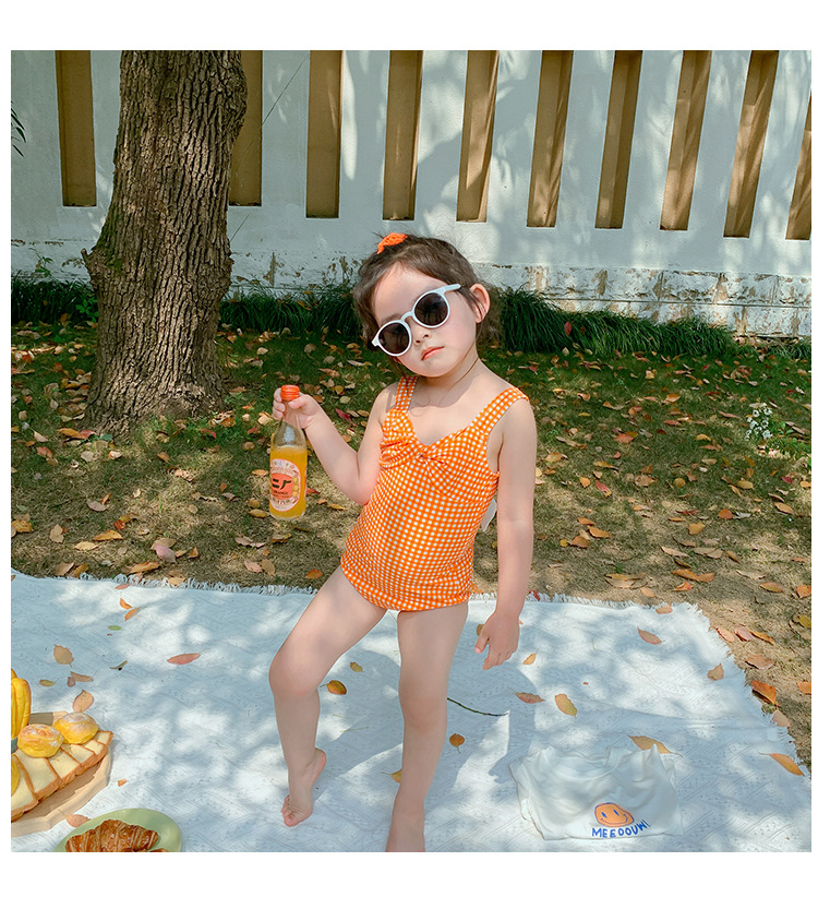 소녀의 활 원피스 수영복 2023 여름 아기 소녀의 귀여운 격자 무늬 비키니 원피스 비치 수영복