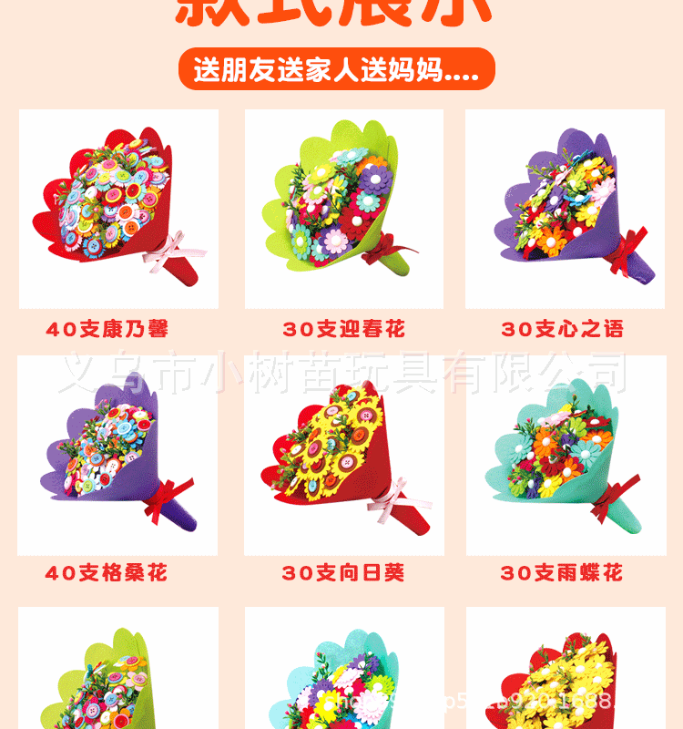 어린이 수제 재료 가방 버튼 꽃 스승의 날 선물 창조적 인 DIY 들고 꽃 꽃다발 교육 장난감