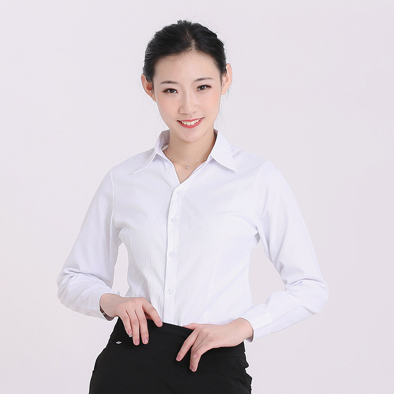 여성용 흰색 셔츠 긴팔 세로 스트라이프 반팔 정장 셔츠 다림질 필요 없는 셔츠 업무용 셔츠스토어 가기