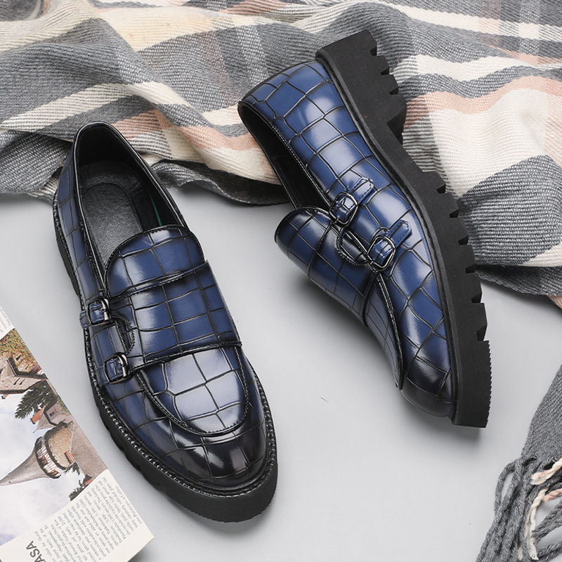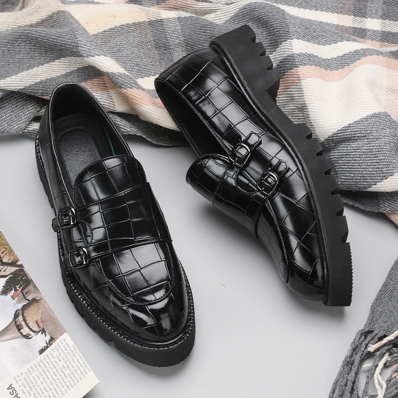 2024 봄과 가을 악어 패턴 플러스 사이즈 밝은 얼굴 로퍼 남성 특허 가죽 밝은 얼굴 두꺼운 발 뒤꿈치 두꺼운 바닥 헤어 스타일리스트 크로스 보더 이베이