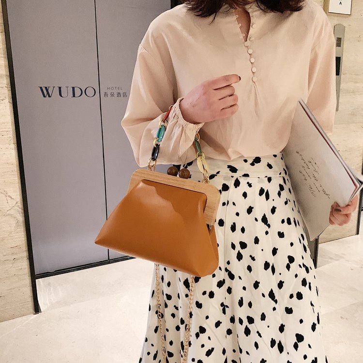 2021 겨울 새로운 여성 가방 한국식 나무 클립 가방 스몰 백 캐주얼 가방 체인 백 숄더 크로스 바디 백 트렌디