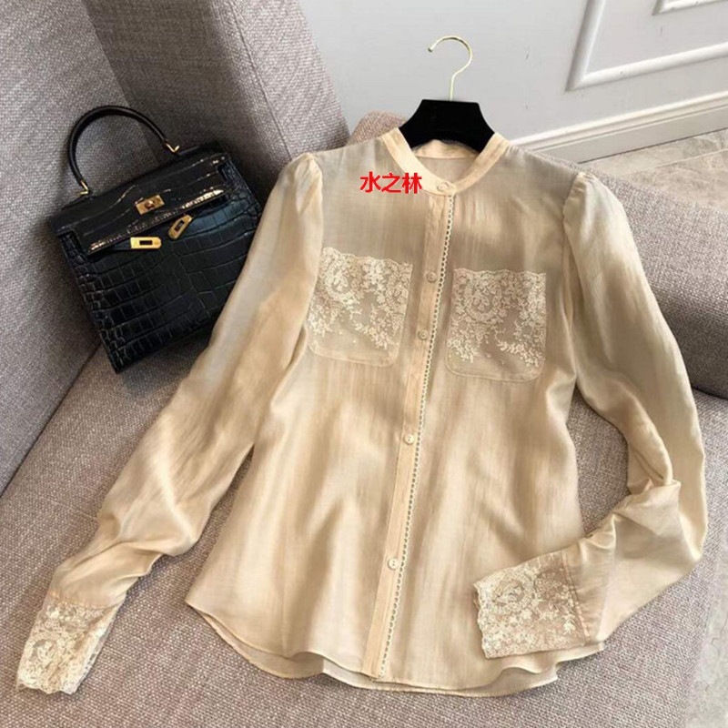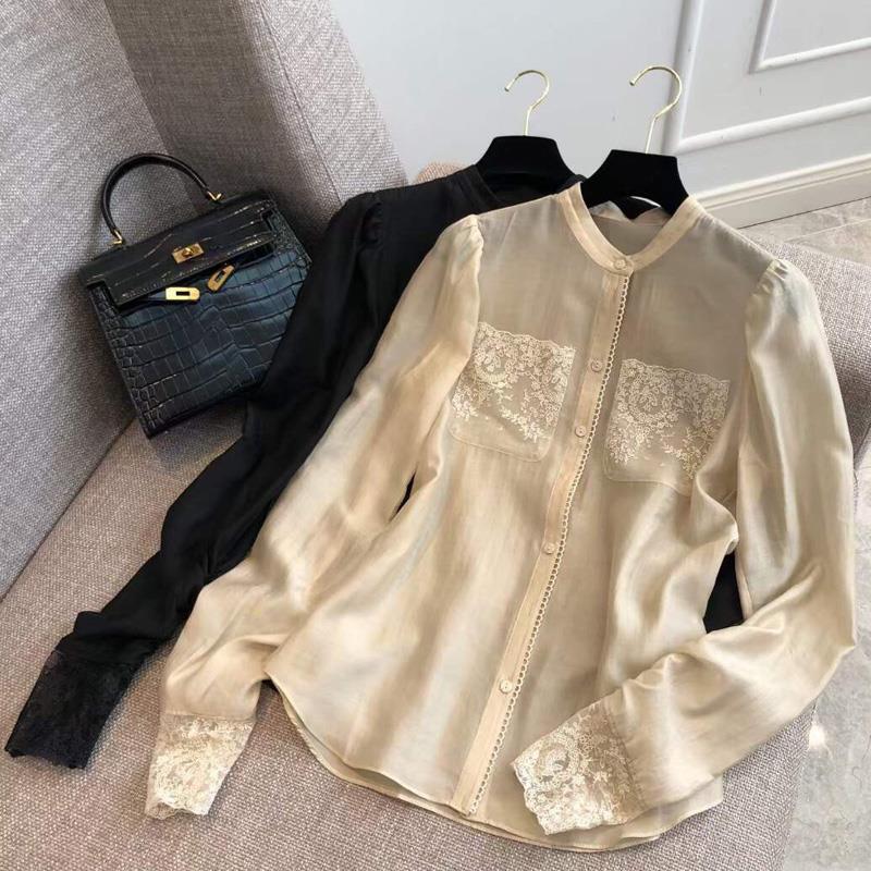 프랑스 법원 스타일! 희귀 한 좋은 상품! 디자인 센스 틈새 탑 여성용 레이스 자수 스티치 칼라 셔츠