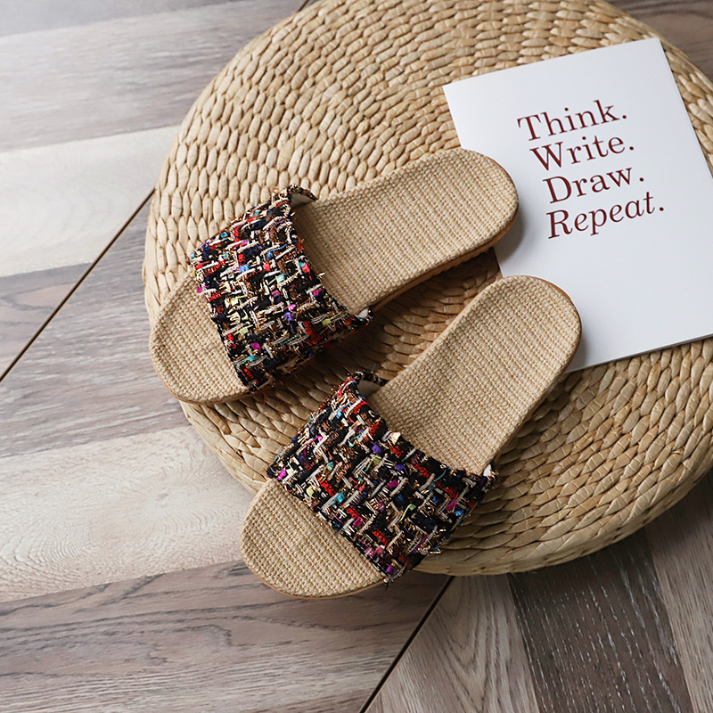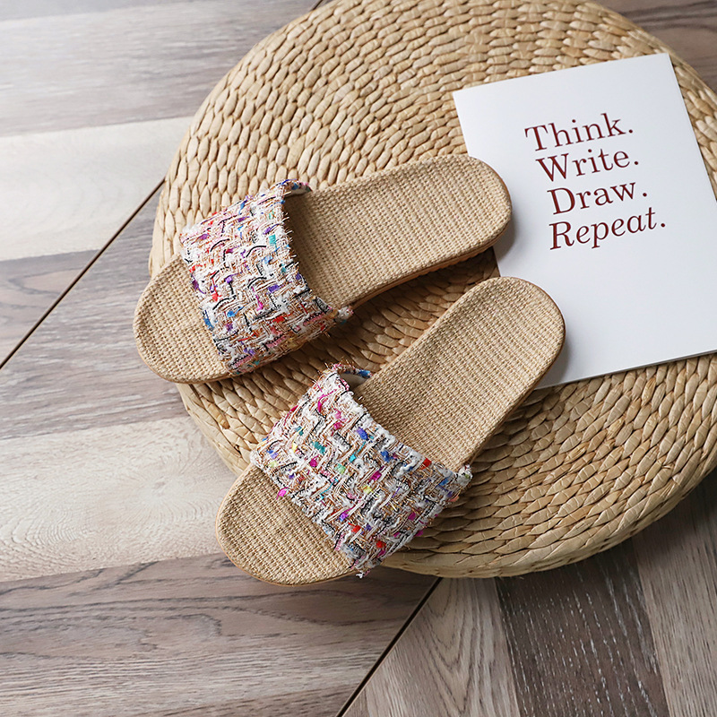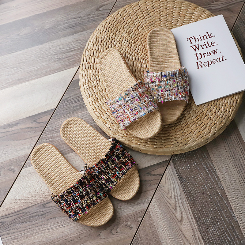 르 홈 실내 통기성 편안한 면과 린넨 슬리퍼 어린이 샤넬 스타일 사계절 오픈 플로어 린넨 슬리퍼 여성 가을