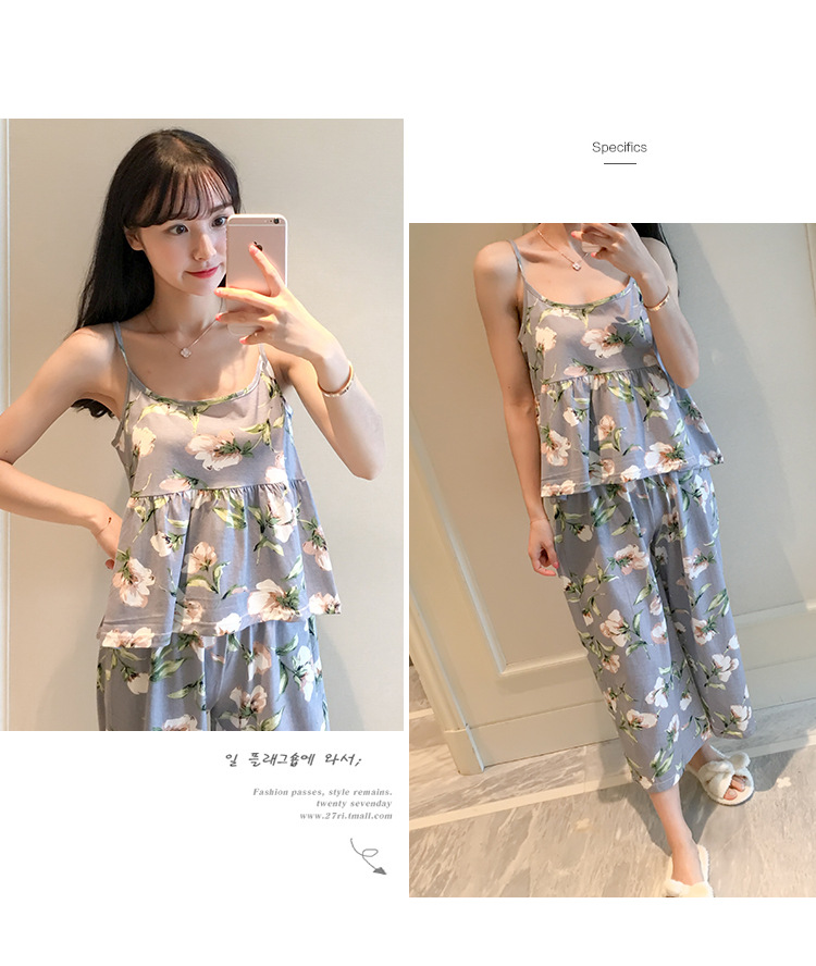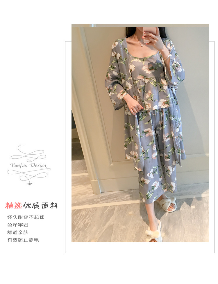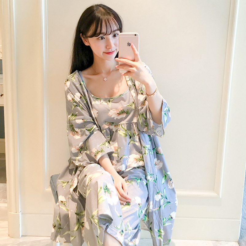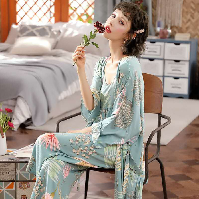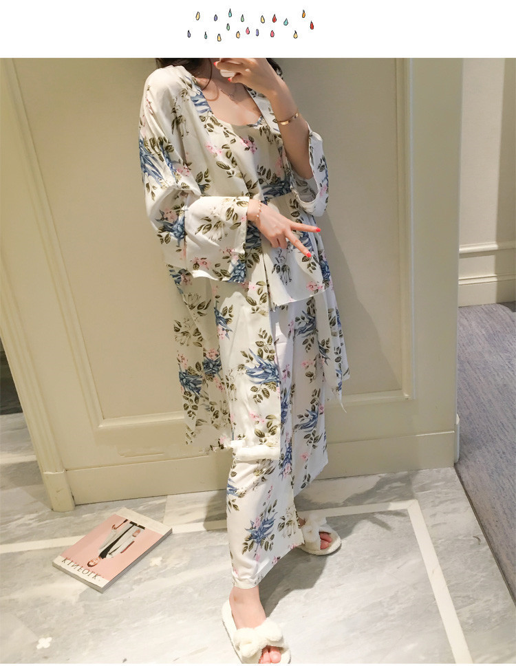 일본식 신선하고 달콤한 잠옷 난초 동백 데이지 꽃 슬링 섹시한 잠옷 3 종 세트 우유 실크 가정 옷