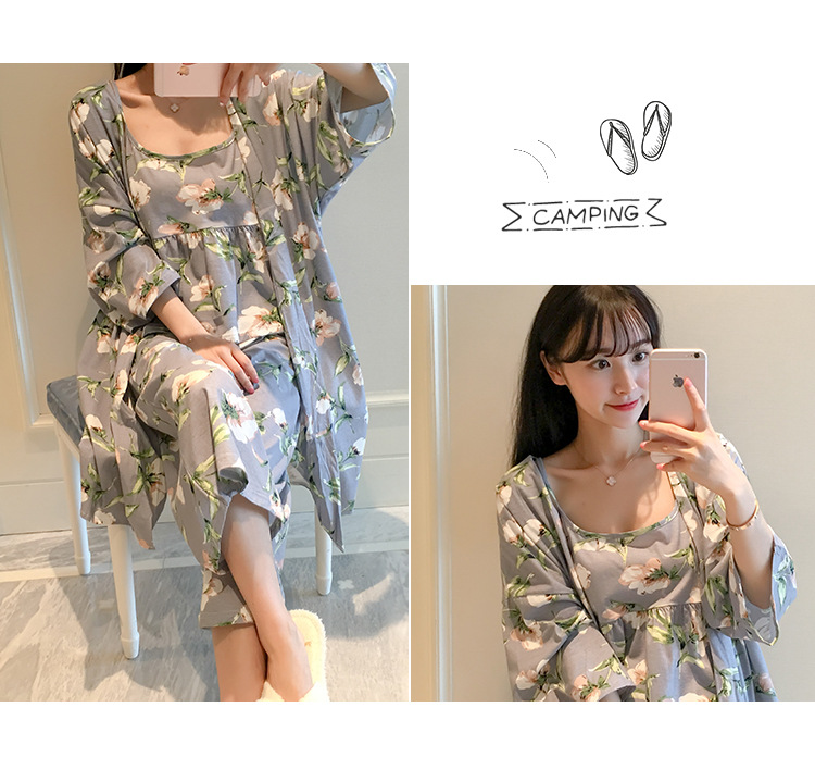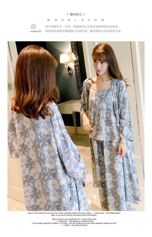 일본식 신선하고 달콤한 잠옷 난초 동백 데이지 꽃 슬링 섹시한 잠옷 3 종 세트 우유 실크 가정 옷스토어 가기
