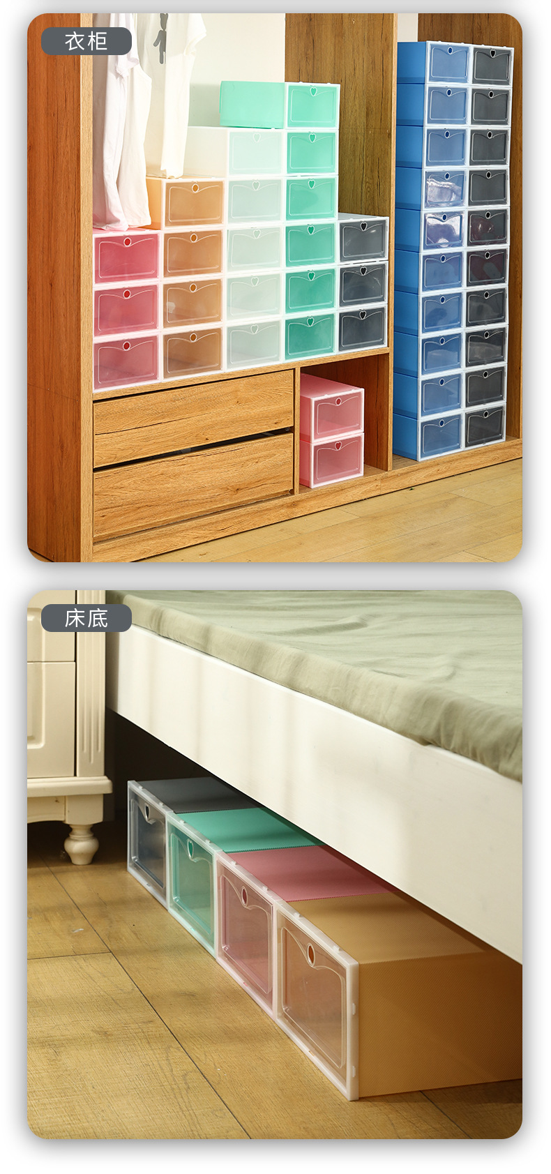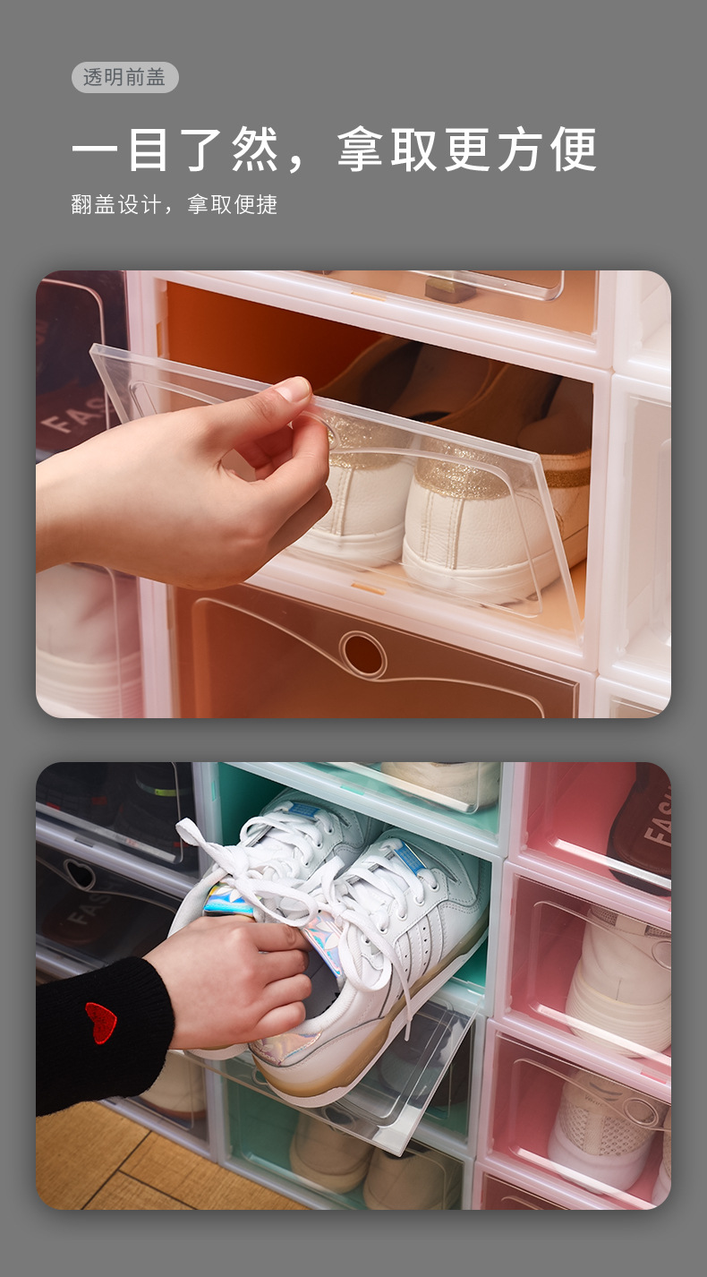 마카롱 투명 신발 상자 대합 조개 껍질 방진 보관 무료 조립 홈 기숙사 운동화 보관 상자 도매