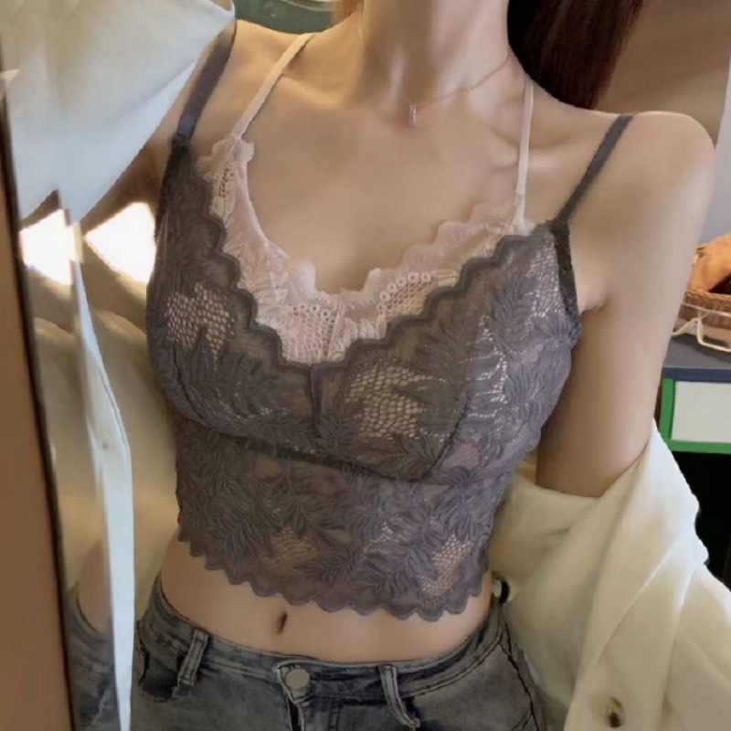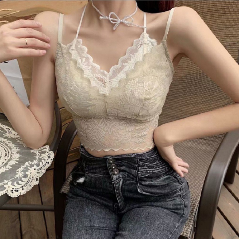 프렌치 스타일의 레이스 탑, 가슴 패드 내장, 여름용 여성용 민소매, 인기 있는 디자인스토어 가기