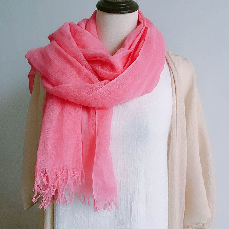봄과 여름 2023 얇은 단색 면과 린넨 부드러운 스카프 통기성 특대 버 숄 여성용 자외선 차단제 스카프 신제품스토어 가기