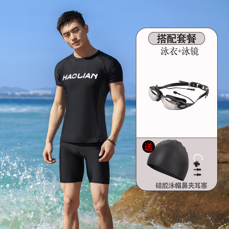 남성용 수영복 5부 바지 스플릿 슈트 반팔 자외선 차단제 속건성 학생 수영 학습 크로스보더 제조업체 도매 맞춤형스토어 가기