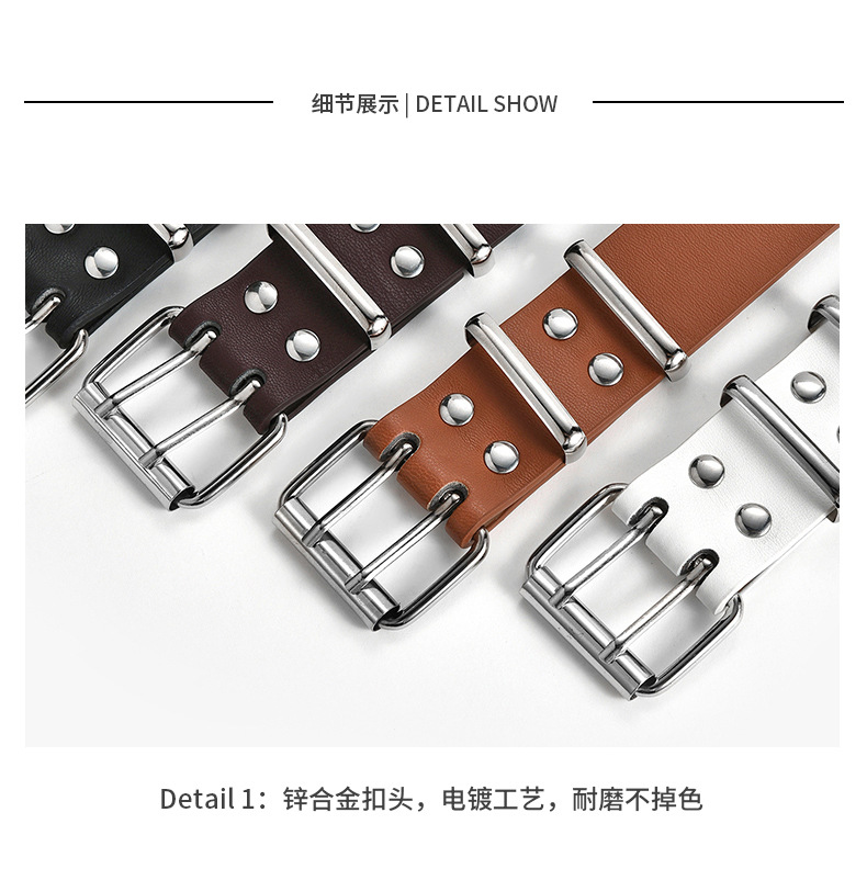 2024 한국 스타일 빈 펑크 캐주얼 벨트 여성 패션 스타 에어 아이 장식 더블 행 벨트 여성 스팟스토어 가기