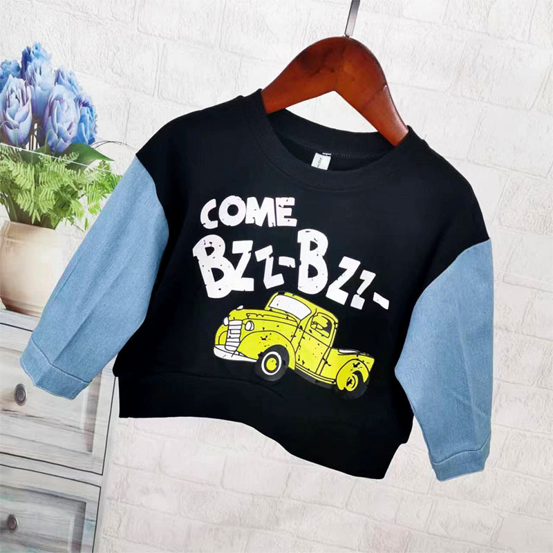 소년 티셔츠 아동용 긴팔 만화 티셔츠 봄 의류 2025 봄, 가을 새로운 스타일 중소형 아동상의 접합 바닥 셔츠스토어 가기
