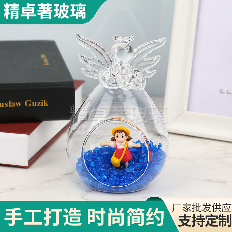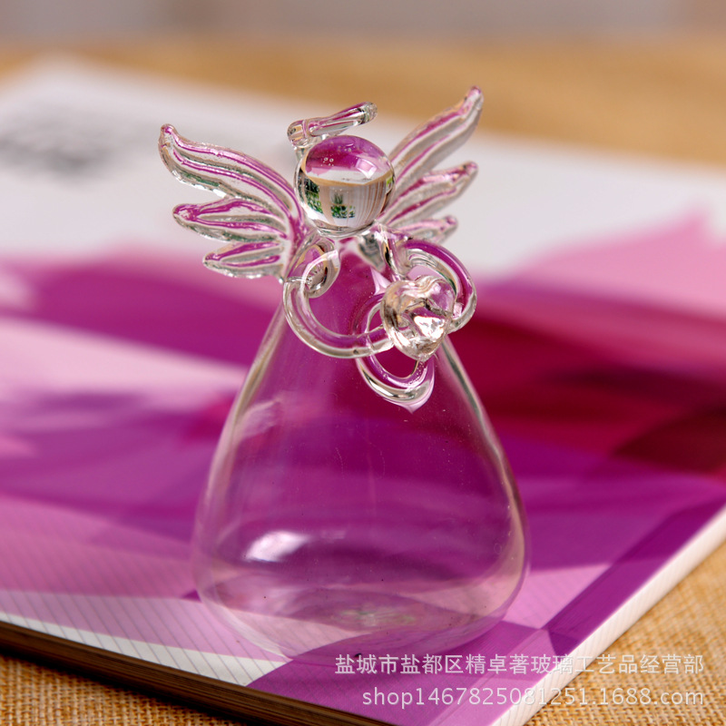 홈 데코 공예품 걸이 장식 미니어처 작은 천사 수경 화병 투명 유리 걸이 장식품